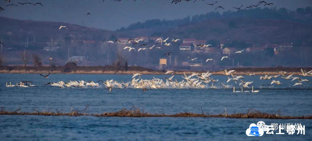 万倾碧波之上,一群群精灵翩然起舞,冬候鸟陆续集结北迁的美景不时出现。去冬高峰期,栖息在这里的天鹅逾万只。较2020年冬千余只天鹅聚集,数量又增数倍。除天鹅外梁子湖湿地还随处可见白额雁、鸳鸯、苍鹭翠鸟、红嘴鸥等鸟类更有白鹤、青头潜鸭等极危物种在梁子湖栖息繁衍共绘千鸟翔集、山水人城,和谐相融的生态美卷。