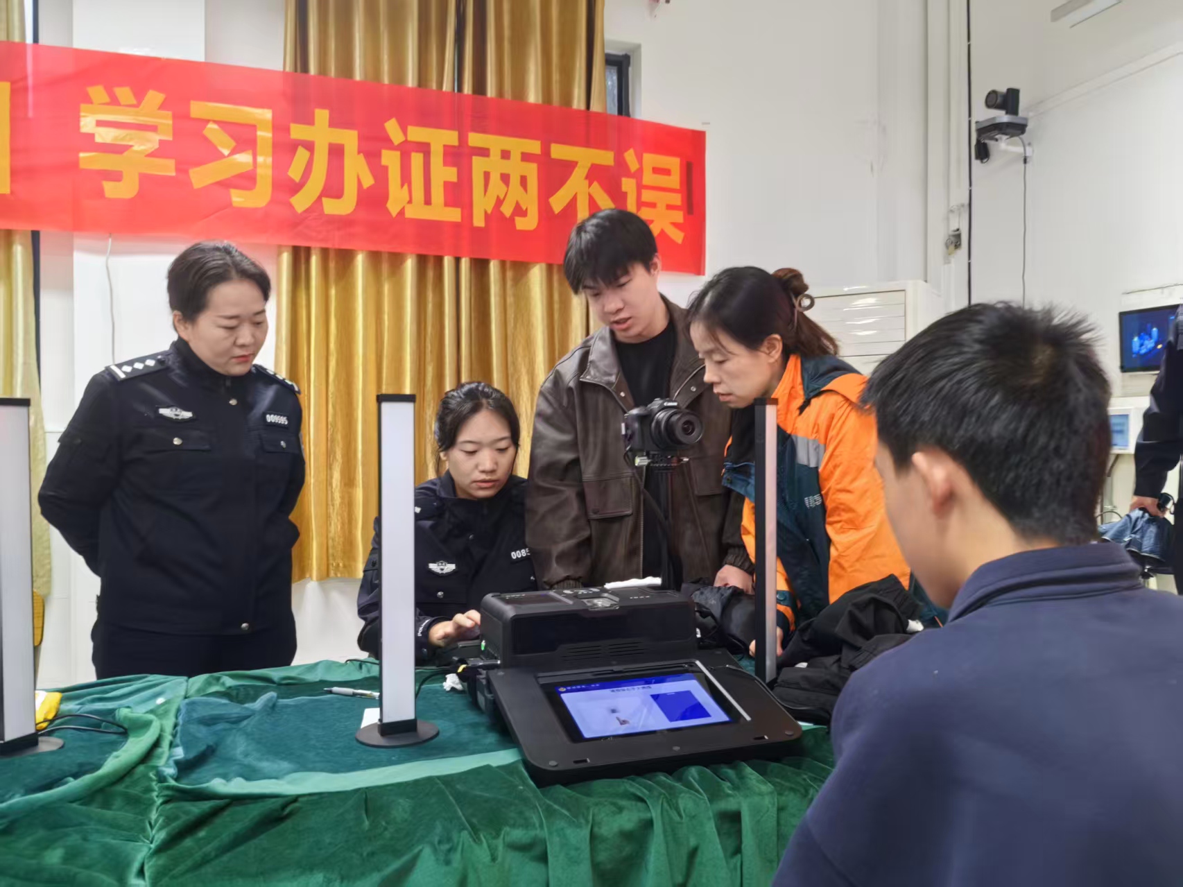 在鄂州高中,一间教室被临时改造成“身份证更换业务办理点”。学生们排成四队,在邮政工作人员和民警的引导下,依次完成登记照拍摄、指纹录入、现场签字确认、缴费、邮寄地址填写等流程,整个过程有序、高效。该校相关负责人表示,“警邮办证进校园”活动的开展,极大缓解广大学生和家长的换证焦虑。