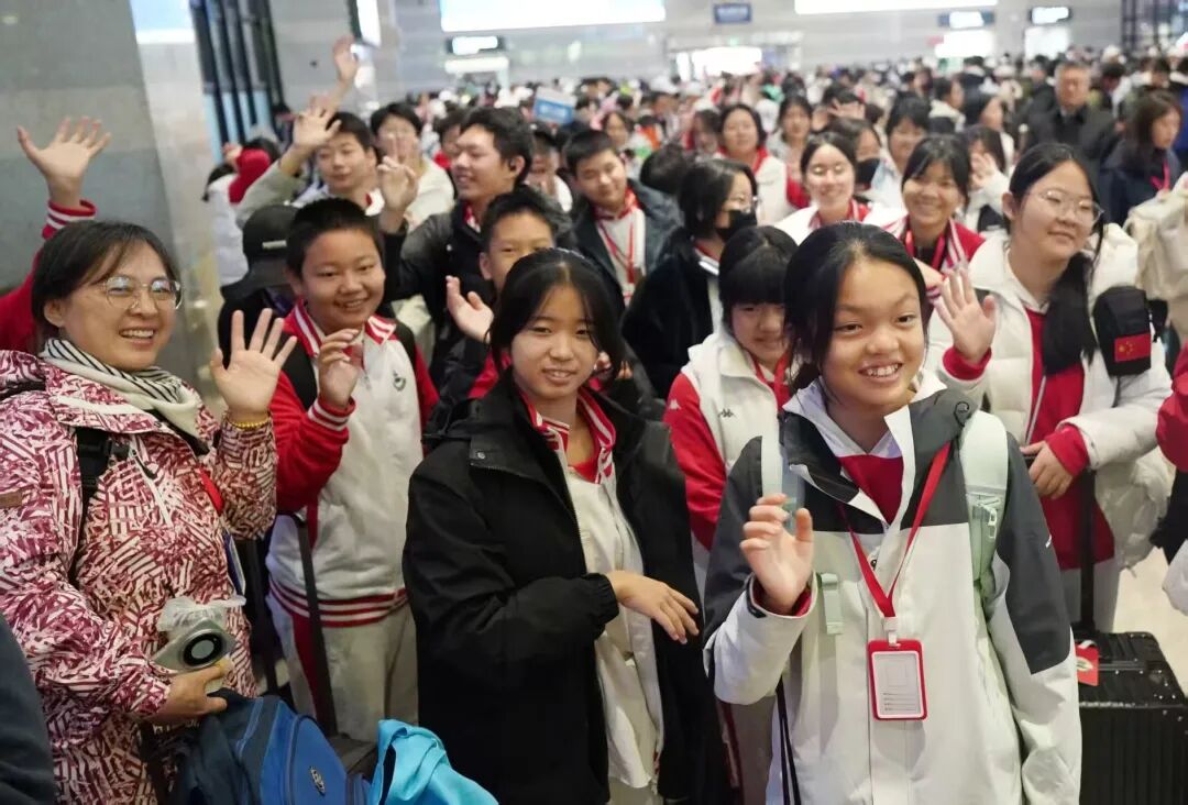 据了解,研学团乘坐今年国铁北京局首发动车组列车研学专列,这是“高铁专列+研学旅行”模式的一次重要实践。根据学生团队出行特点和需求,国铁北京局专门规划了G4811次高铁专列的运行时刻和路线,北京西站开辟专用进站通道、安检口、学生专属候车区,护航学生平安出行。