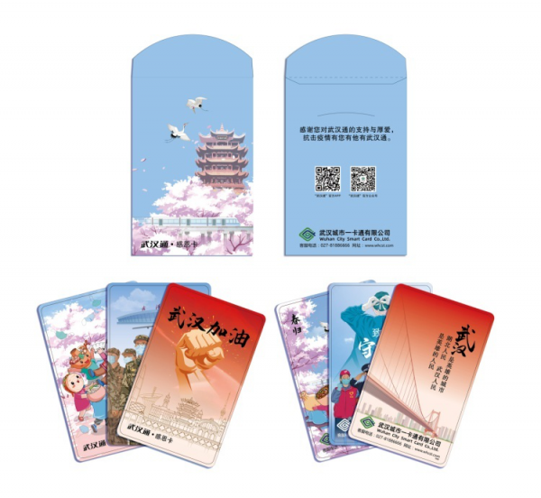 4月23日,武汉通推出“情暖武汉,感恩有你”的全新主题套卡内含《武汉加油》《致敬守护者》《春归》三张纪念卡全部采用线上发售的方式无接触式售卡