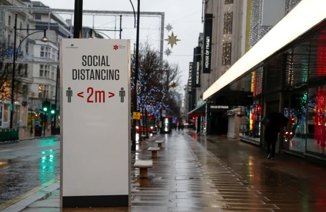 12月21日,英国伦敦的商业街牛津街一片冷清。新华社记者 韩岩 摄