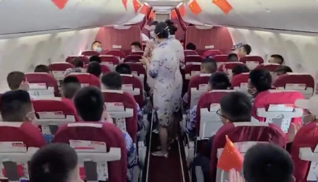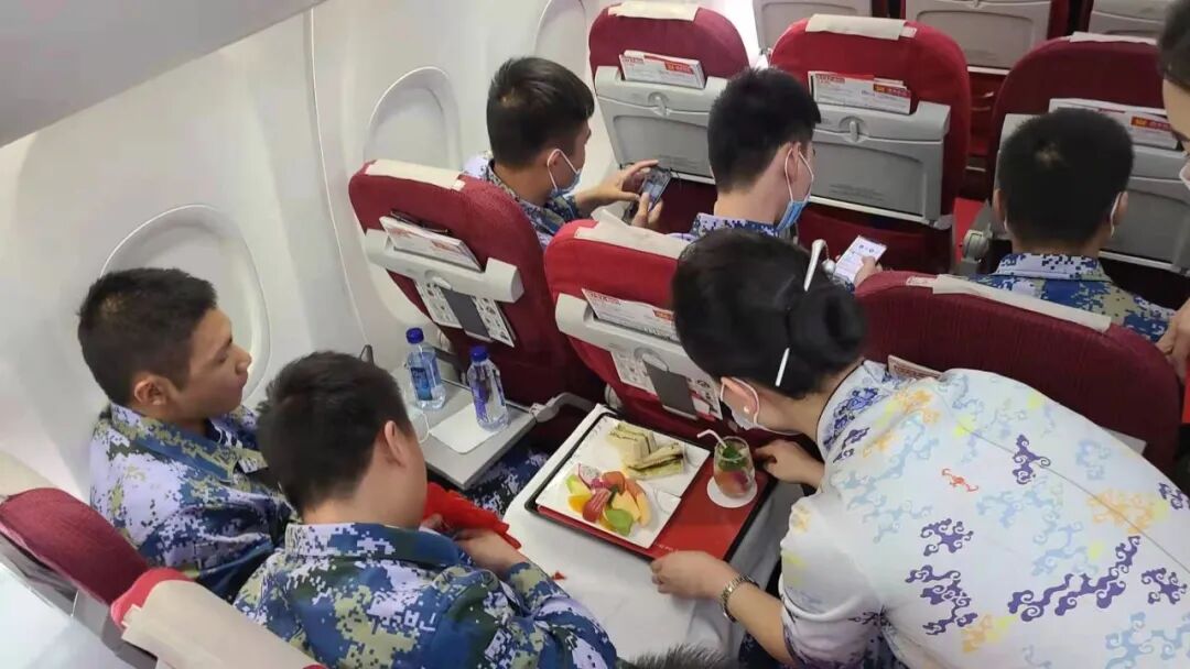一架民航包机起飞升空送百余名老兵退伍返乡