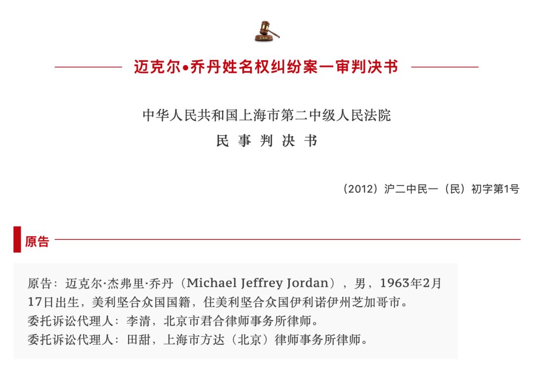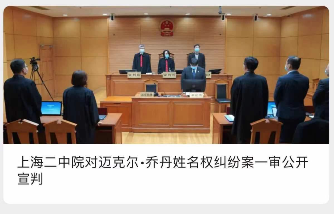 12月30日,上海市第二中级人民法院对前美国职业篮球运动员迈克尔·乔丹诉乔丹体育公司、百仞贸易公司姓名权纠纷案作出一审宣判。
