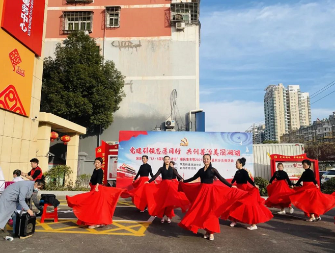 澜湖社区文艺志愿者们为现场的居民带来的才艺表演《领航新时代》,红裙明艳,意气飞扬;一首合唱《再唱山歌给党听》更是掀起了活动高潮,吸引更多围观的居民参与到我们的活动中。