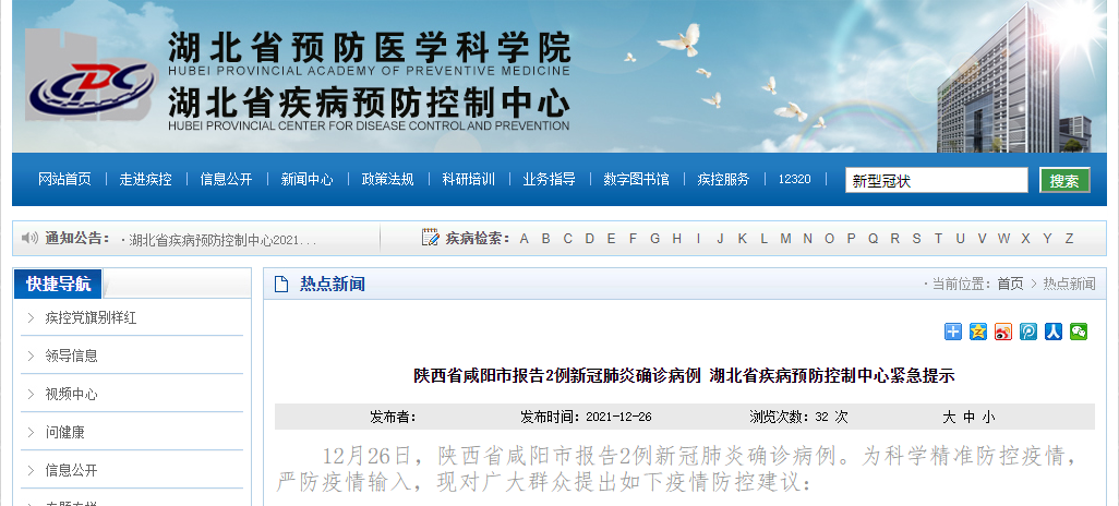 陕西省咸阳市报告2例新冠肺炎确诊病例 湖北省疾病预防控制中心紧急提示