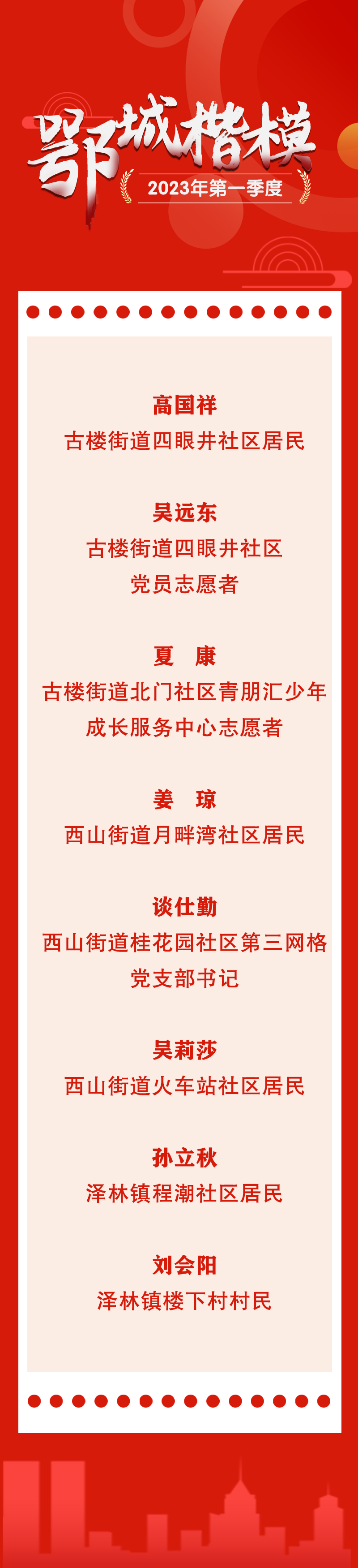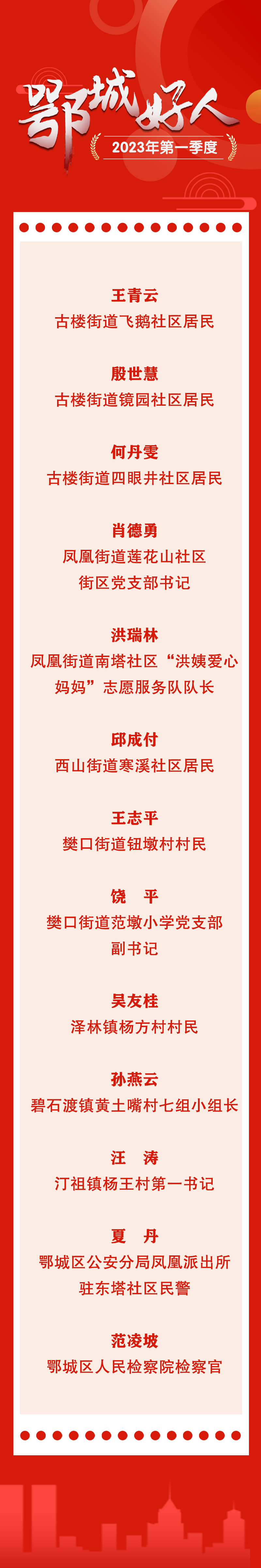 最新!2023年第一季度“鄂城楷模”“鄂城好人”名单出炉