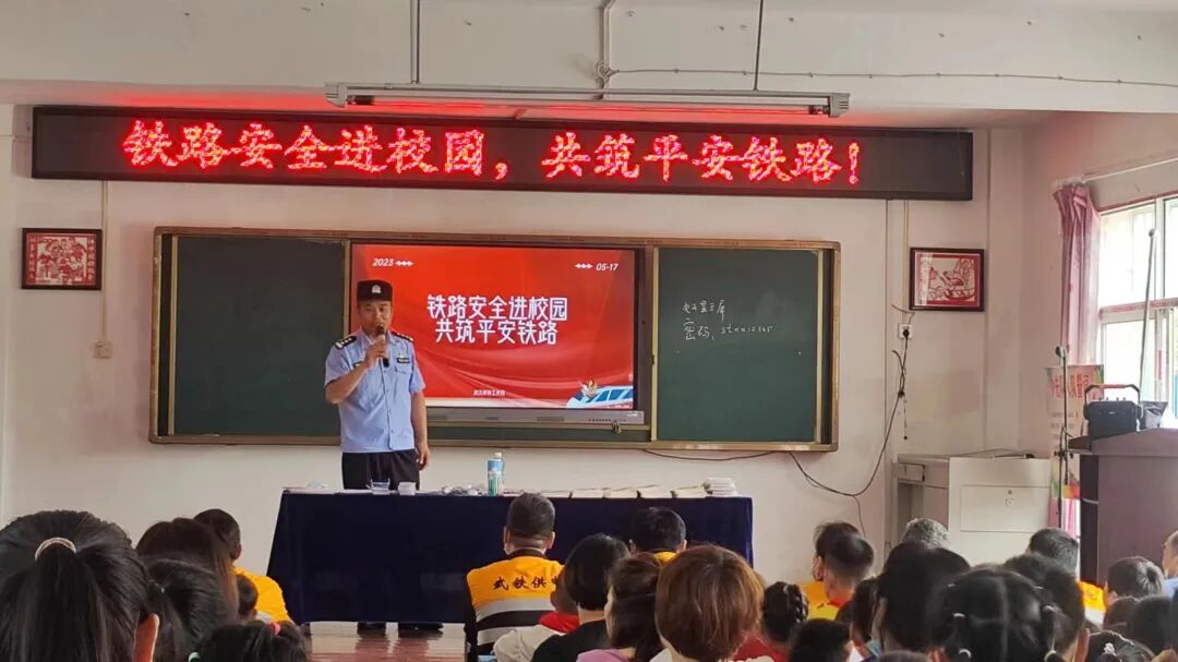 为了维护铁路安全秩序,关爱未成年人生命安全,5月17日,新庙镇沙塘小学联合武汉高铁供电段、武汉高铁公务段、新庙派出所、大冶北铁路公安、新庙社工站,开展“铁路安全进校园,共筑平安铁路”安全宣传教育活动。