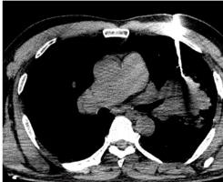 在肿瘤科陈永忠副主任的组织下,管床医生孟平与穿刺医生严龙君详细阅片,讨论后决定选择紧邻左肺主支气管处取活检。术中,严龙君医生仔细选择最佳进针穿刺路线,将套管针经皮肤穿刺进入肺组织内,重复CT扫描以确定目标位置,换活检针分次取出2条灰白相间组织。术后患者未诉特殊不适。5月23日术后病理结果回报示肺鳞癌。家属忐忑不安的心终于放下,同时也对医护人员高尚医德、严谨作风、精湛技术赞不绝口。