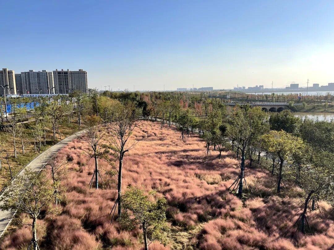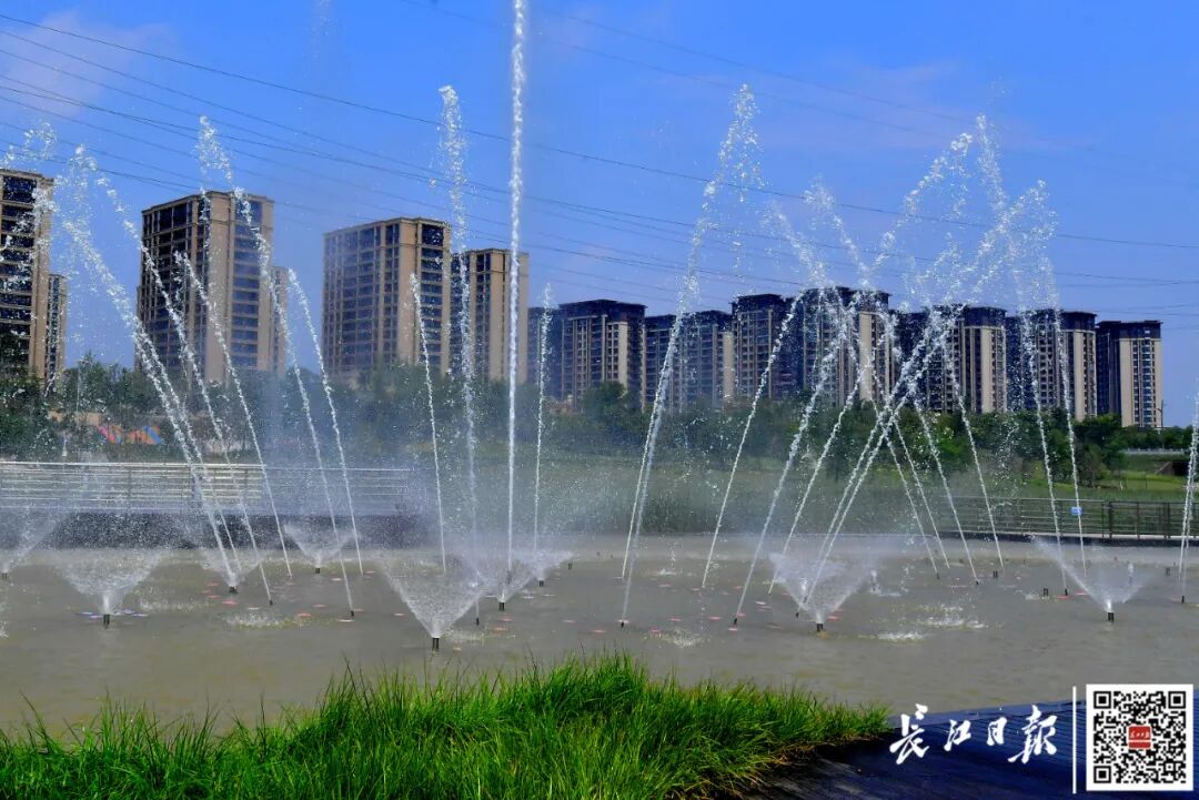 据“蓝玉项链”项目负责人介绍,整个公园是一条9.6公里长的滨水生态绿廊,打造出宽5米的有氧绿道慢行系统,一条连通倒水河、陶家大湖、七架山水库三大水系的生态带穿城而过。