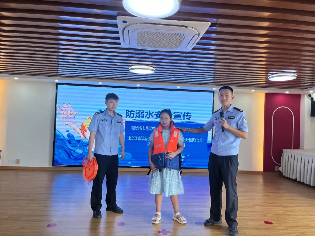 活动中,长江航运公安局黄石分局鄂州派出所工作人员现场讲解了防溺水相关器材及救生设备的使用知识。
