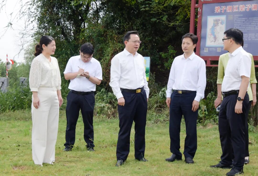 环湖路磨刀矶大桥附近原是一片藕塘和鱼塘,实施退垸还湖还湿后,这里正在建设湿地公园,未来将成为网红打卡地。孙兵实地查看梁子湖环湖生态环境治理项目一期工程,并叮嘱当地负责人,要加快施工进度,确保早出形象,力争今年底前完成目标任务。要严格落实各级河湖长责任,做大做强水草产业,加强湖泊岸线整治、生态修复和景观提升,全面推动河湖长制从“有名有实”向“有力有效”转变。