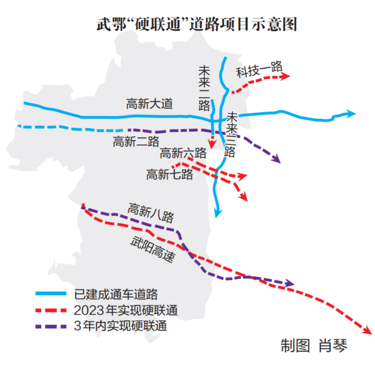 项目将于年内全面完工。建成通车后,武汉至鄂州将新增一条东西方向联通路,届时左岭新城片区至葛店的车程将缩短为5至10分钟,逐步完善的一体化交通体系将进一步助力武汉新城的建设发展。