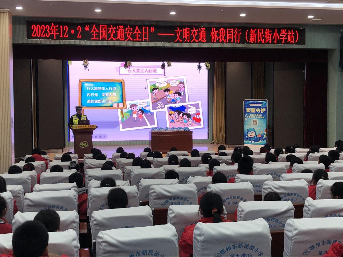 今年12月2日是第十二个“全国交通安全日”,为进一步提高学生的交通意识和自我保护意识,有效预防和减少学生交通事故发生,推动交通安全进校园。新民街小学联合鄂城区交警一中队深入课堂,开展交通安全宣传活动,为同学们的交通安全保驾护航。