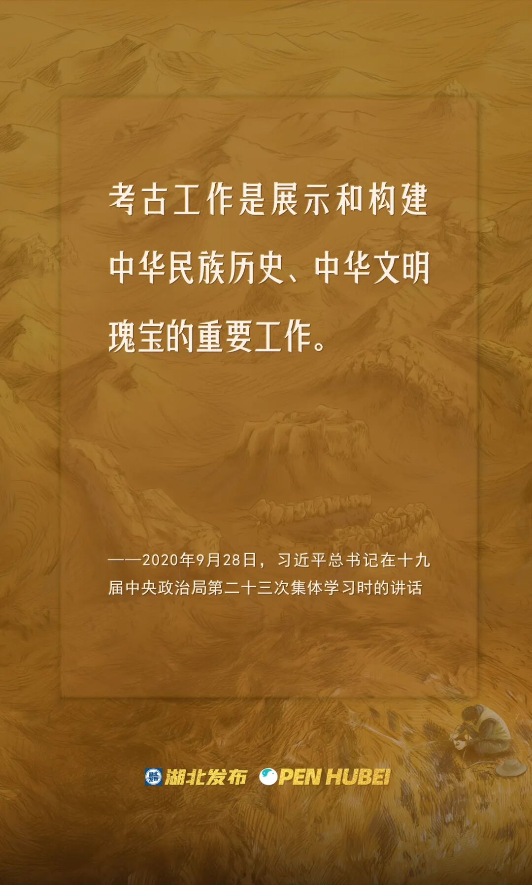 习近平总书记多次对考古工作作出重要指示,以坚定的文化自觉和高度的文化自信,溯源历史、寻脉中华,关心推动考古事业向前发展,为建设中华民族现代文明指引前进方向。