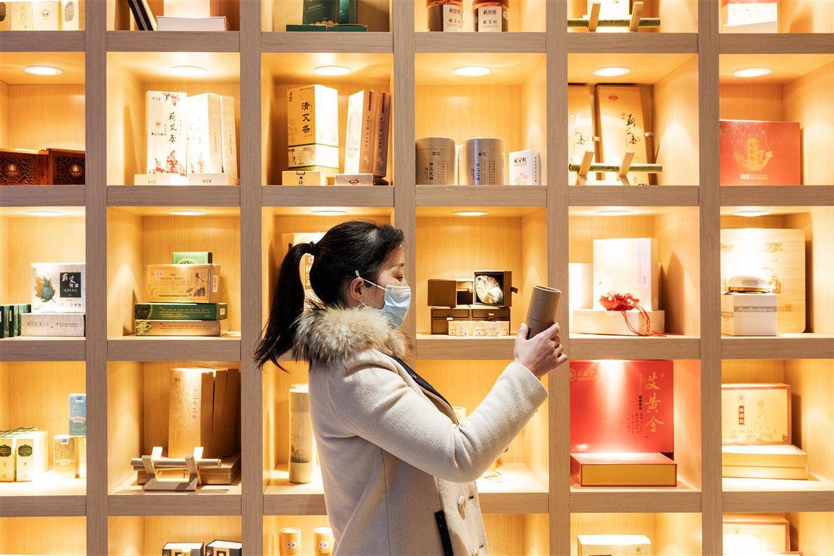 顾客在蕲春蕲艾展区选购商品。(湖北日报全媒记者 任勇 摄)