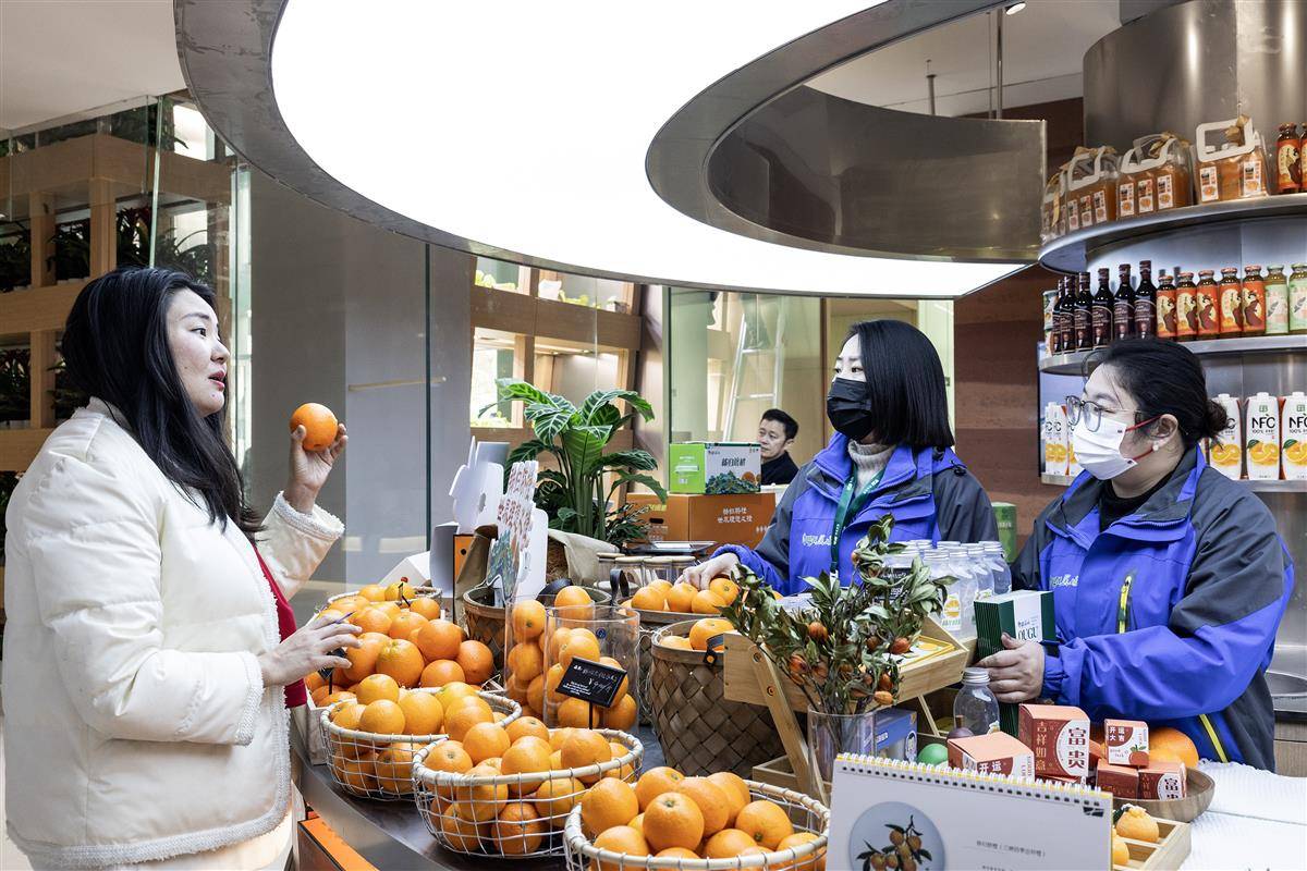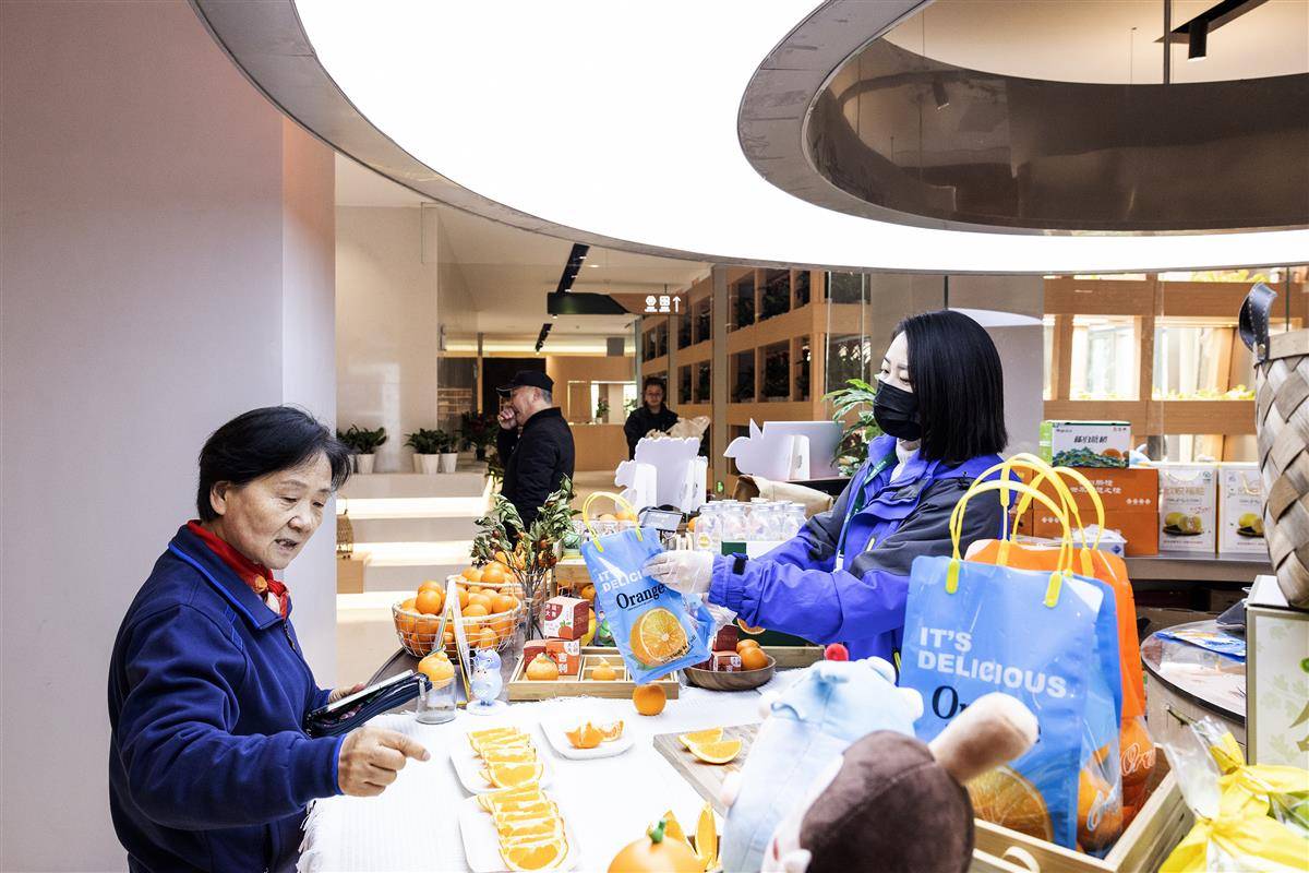 顾客在宜昌蜜桔展区选购商品。(湖北日报全媒记者 任勇 摄)