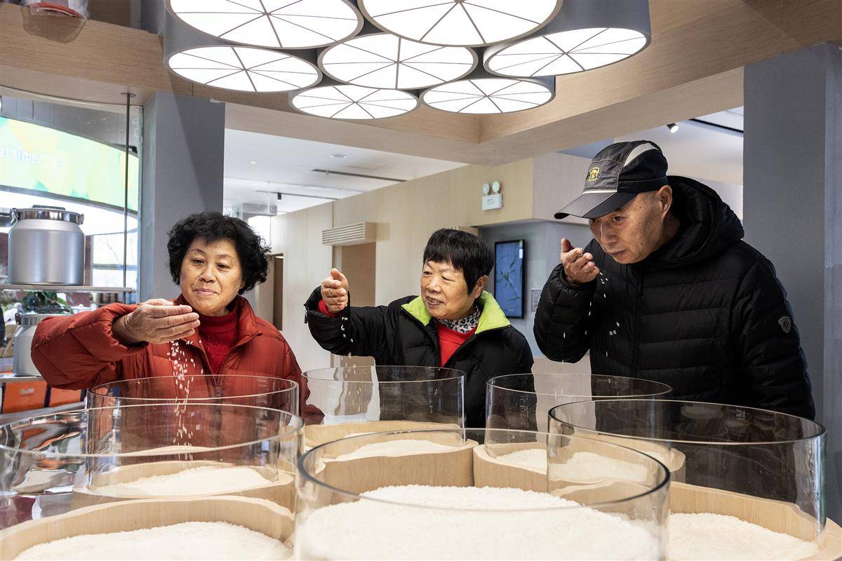 在京山桥米馆,一段手绘的水稻动画生动描绘了桥米的生长历程。与京山桥米一同亮相的,还有虾稻米、低糖米、黑米等。