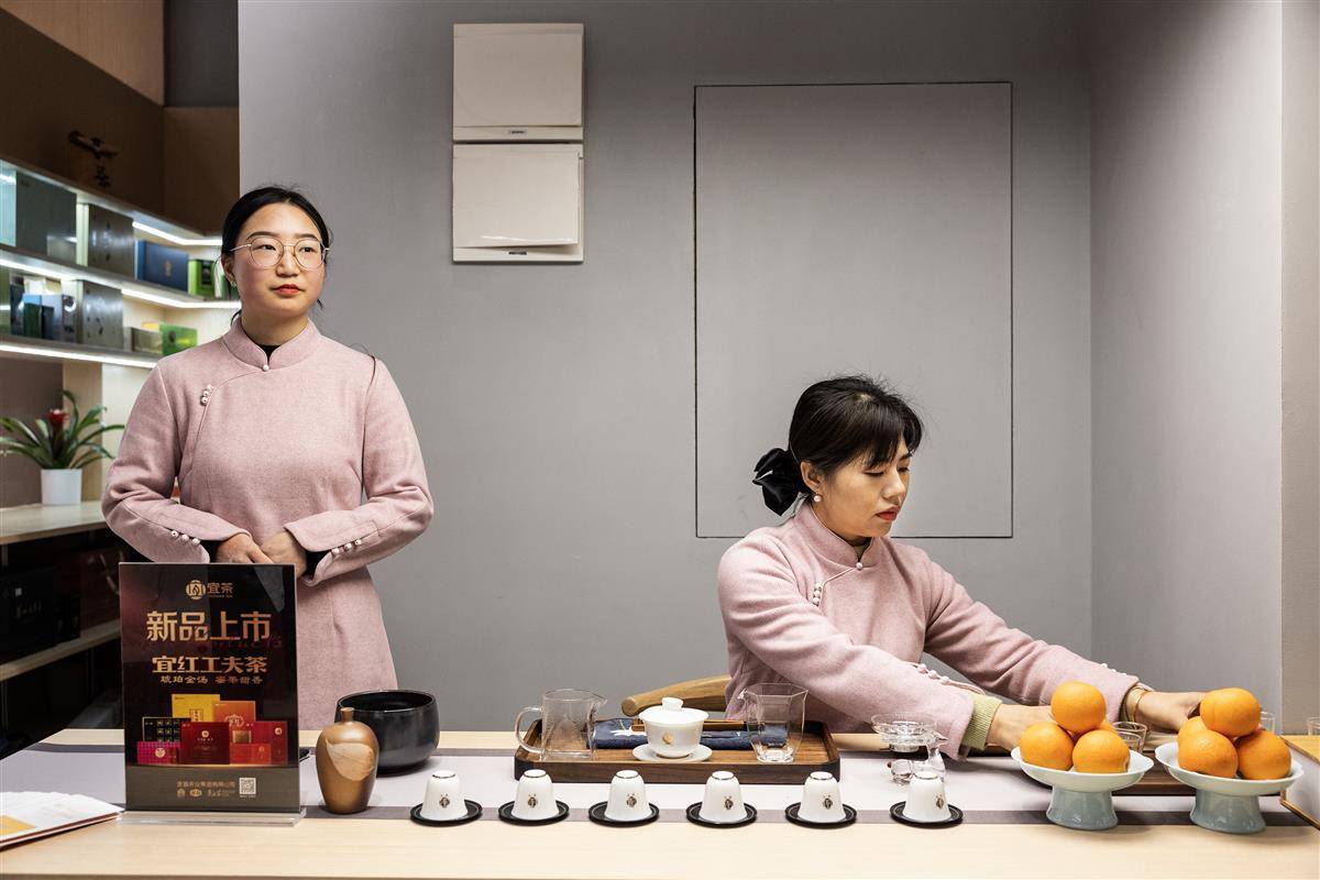 作为茶叶大省,湖北茶品类最为齐全,赤壁青砖茶、宜昌宜红茶、恩施玉露均有着深厚的历史渊源。赤壁青砖茶馆,让“老古董”有了“新味道”。工作人员现场用青砖茶制作新式奶茶,口感清爽又细腻。