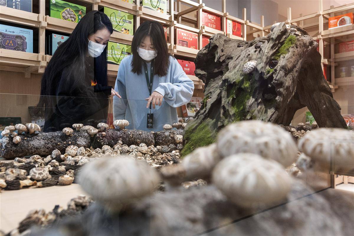 顾客在随州香菇展区选购商品。(湖北日报全媒记者 任勇 摄)