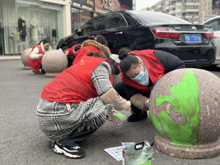 “这些石墩画得真好看,既宣传了环保理念又美化了环境,非常有创意,社区有心了。现在买菜路过社区门口都忍不住多看两眼。”在花湖镇站前社区门前小广场,承担着人车分流、规范交通、保障设备设施的石球,变得鲜艳醒目、趣味十足,引得过往居民驻足观看,连连称赞。