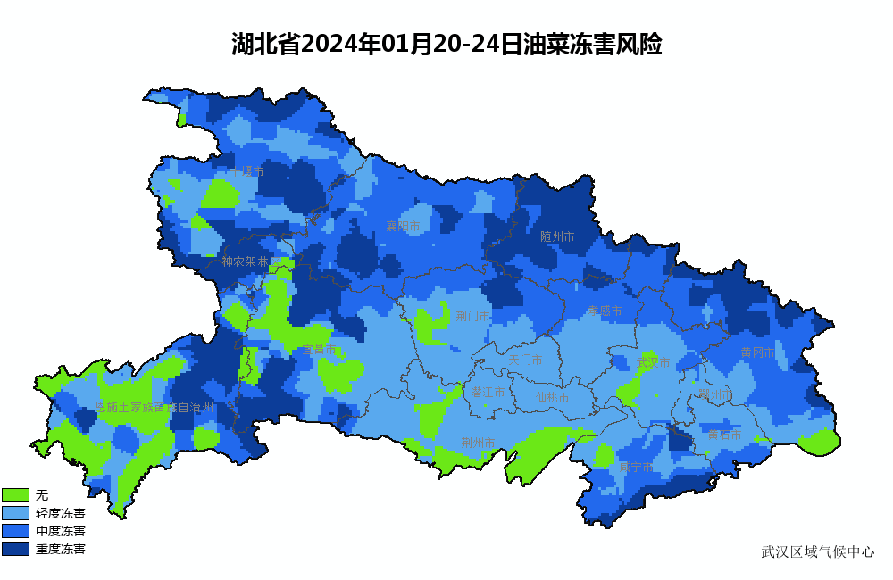 图1 湖北省2024年1月20日至24日油菜低温风险预警