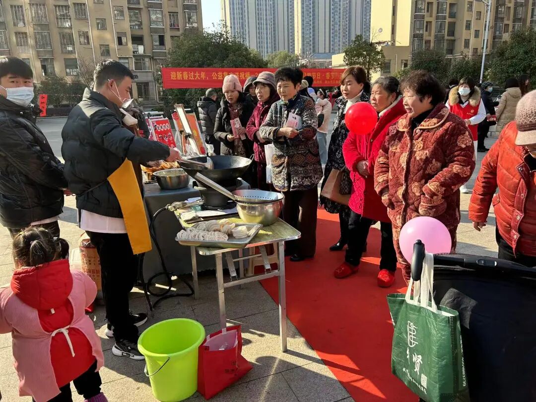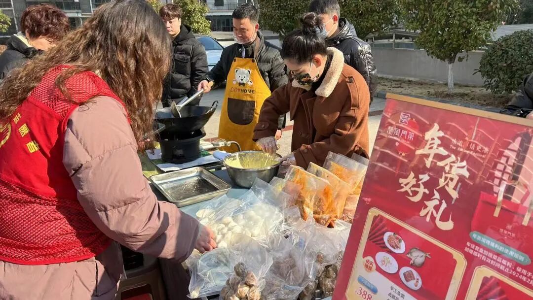 最具烟火气的莫过于年货义卖区,风干鸡、风干武昌鱼、藕夹、各种肉丸、鱼丸……光听名字就已经垂涎欲滴,公益义卖区“干货满满”,还有现场烹饪,分发给大家品尝、选购,扑面而来浓浓的香味,居民朋友们拉上自己的三五好友一起品尝、“团购”,络绎不绝的人群将家门口的“年味儿”瞬间拉满。