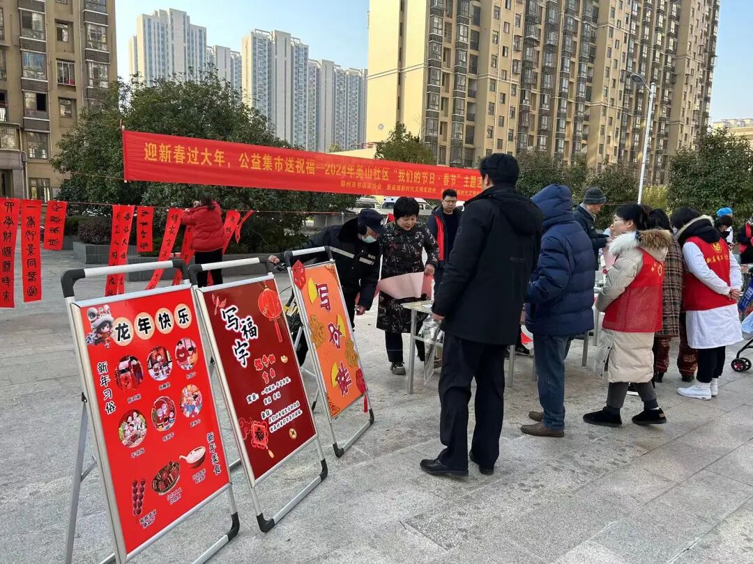岁末年初,春节将至。为弘扬中华民族传统文化,丰富社区居民的文化生活,营造良好的节日氛围,英山社区充分发挥五社联动机制,链接社会资源。1月25日上午,英山社区携手新庙镇新时代文明实践所、新庙镇社工站、新庙镇卫生院及辖区多家爱心企业,在东方世纪城小区共同举办了“迎新春过大年,公益集市送祝福”主题活动。