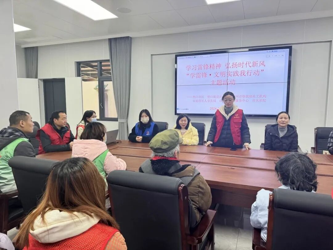 2024年3月5日是第61个学雷锋纪念日。为践行社会主义核心价值观,大力弘扬雷锋精神及“奉献、友爱、互助、进步”的志愿精神,在鄂城区民政局、樊口街道公共服务办的指导下,樊口街道社工站联合樊口社区、退役军人事务局,开展“学习雷锋精神,弘扬时代新风”主题活动,以实际行动践行和弘扬雷锋精神。