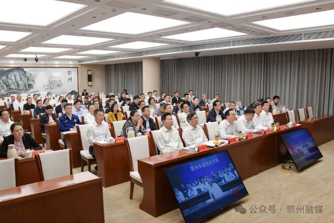 市领导陈攀、卢辉、叶祥明、刘厚文,市政府秘书长邵立春分别在主会场参加会议。会议通报了2023年度我市强县工程考核等有关情况。会议以电视电话会形式召开,各区、葛店经开区、临空经济区设分会场。