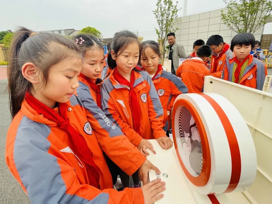 全校五个年级的184名学生在老师的带领下,有序地参观并体验了展品。活动现场的科普性、趣味性展品教具极大地激发了同学们的好奇心。他们纷纷驻足,亲手操作科普展品,认真观察现象,研究原理。“一分钟有多久”“短期记忆测试”“跳舞的回形针”“窥视无穷”“机械升缩花”“魔镜”“伯努利星环”等场景体验,让同学们在“试一试”、“想一想”、“看一看”中感受到科学的乐趣。
