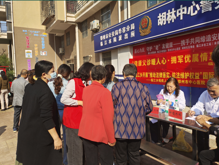 10月11日上午,临江乡人民政府联合鄂州市中心医院在胡林社区开展“医心为民,守护‘老’友健康”主题重阳节活动。