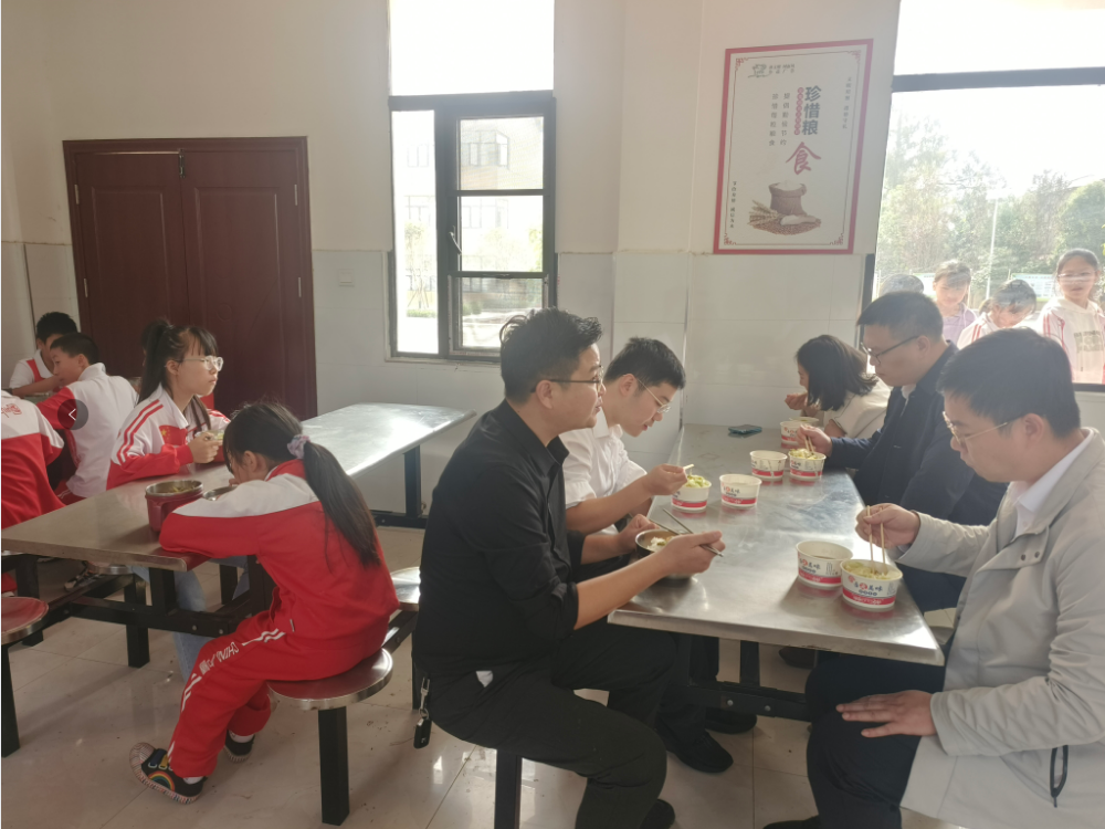 午餐时间,调研组在临江小学食堂与师生共进午餐。“饭菜合不合口?够不够吃?味道怎么样?”调研组主动和学生亲切交流,听取他们对饭菜质量、口感及食堂日常环境卫生等方面的意见和建议,鼓励引导学生要珍惜粮食、践行“光盘行动”,养成科学饮食、健康饮食的良好习惯。