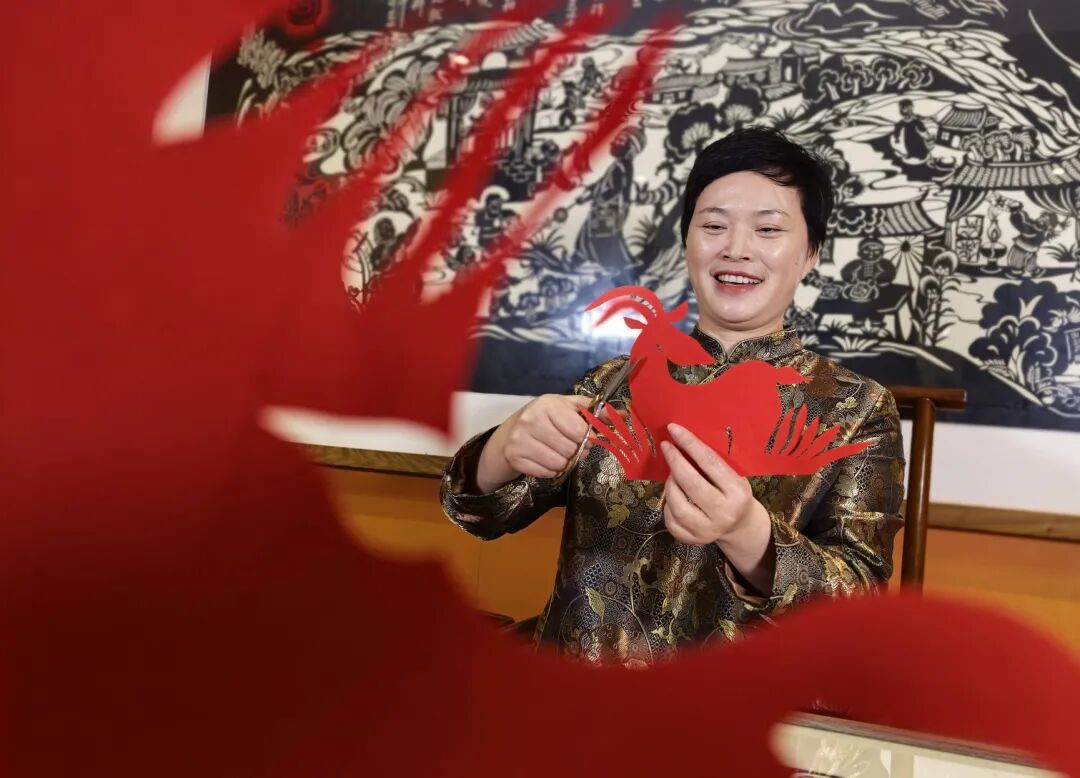 鄂州雕花剪纸是民间传统艺术的一种,是我国民间艺术宝库的一枝奇葩。作为南方剪纸的代表之一,鄂州雕花剪纸既有原生态的朴实特征,又有本地文化特色的地域性特征。剪纸非遗传承人坐在屋内,手中的刻刀和剪刀在红纸上灵活地穿梭,纸屑纷纷飘落,如同下起了一场红色的雪。他们专注的眼神中透露出对艺术的热爱和执着,每一个动作都熟练而精准。不一会儿,一幅幅精美的剪纸作品便呈现在眼前,无论是寓意吉祥的福字,还是活灵活现的图案,亦或是展现民间故事的大型剪纸,都展现出了剪纸艺人的高超技艺。这些剪纸作品在灯光下透出一种古朴的美,每一个镂空的部分都像是一扇通往传统文化世界的窗户。这些指尖上的艺术在深秋的季节里散发着独特的魅力,传承着中华民族悠久的文化传统,也成为了摄影名家们镜头下珍贵的画面。