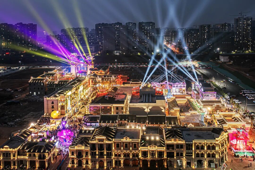 鄂州旧称吴都、武昌,是“中国三国文化之乡”, 鄂州吴都乔街是湖北首个以 “市井三国、浪漫三国” 为主题的全时全龄沉浸式文旅综合景区,项目占地500亩,建筑风格融合汉唐风、明清味、民国韵和现代感。项目以“江东二乔”等历史人物IP为核心,通过戏剧性创作将三国文化与现代时尚结合,有《小乔初嫁了》等演艺剧目,还有NPC互动、快闪、民俗表演等活动。火壶表演中,表演者手中的火壶喷出绚烂的火焰,那火焰在冷风中舞动,犹如盛开的花朵,火焰的热度似乎驱散了深秋的寒意,让现场充满了热烈的氛围。舞者们身着这些华丽的服饰,动作整齐有力,他们的笑容在秋风中绽放,传递着对传统文化的热爱。街道两旁古老建筑的飞檐斗拱在秋风中更显古朴庄重,它们见证了岁月的变迁,也为这场民俗盛宴增添了浓厚的历史氛围。传统与现代在这里完美融合,摄影名家们被这独特的场景所吸引,他们不停地变换角度,捕捉每一个精彩的瞬间,将这热闹而富有文化底蕴的画面永远定格。