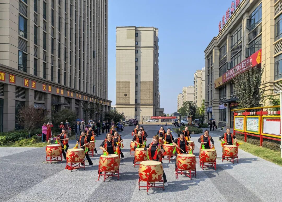 2017年7月,为支持以鄂州机场为主体的湖北国际物流核心枢纽项目建设,燕矶、杨叶和沙窝三个乡镇8个村 6000多户村民被列入征迁安置范围。杨叶安置社区就是其中一个重要安置社区,教育、医疗资源得以优化,文化设施建设和活动不断增强。社区居民组织的威风锣鼓表演敲响了深秋的活力之音。鼓手们手中的鼓槌有力地敲击在鼓面上,发出震天动地的声响。每一次敲击,都能看到鼓手们脸上洋溢的激情,她们的眼神坚定而专注,全身心地投入到表演中。采莲舟表演则展现出一种别样的灵动之美。表演者们手持采莲舟,模拟着在水中划船采莲的动作,他们的身姿轻盈,仿佛真的在波光粼粼的水面上滑行。在秋风中,他们的表演如同流动的画卷,与周边现代化的临空经济区建筑和繁忙的机场运营相互映衬,形成了鲜明的对比。这种传统民俗文化与现代发展的碰撞,产生了独特的视觉效果,吸引着摄影名家们用镜头记录下这一精彩时刻。