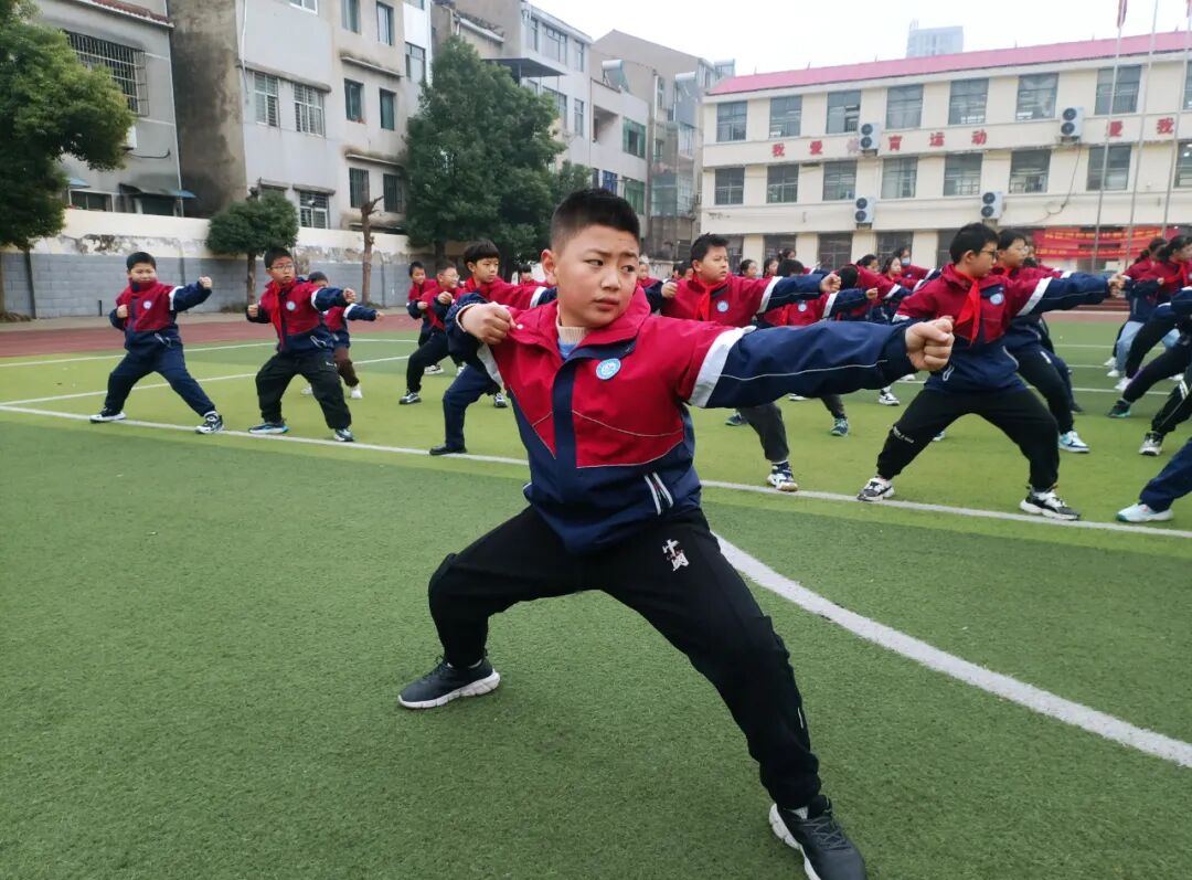 ▲正在做“自然之光”课间武术操的葛店二小少年