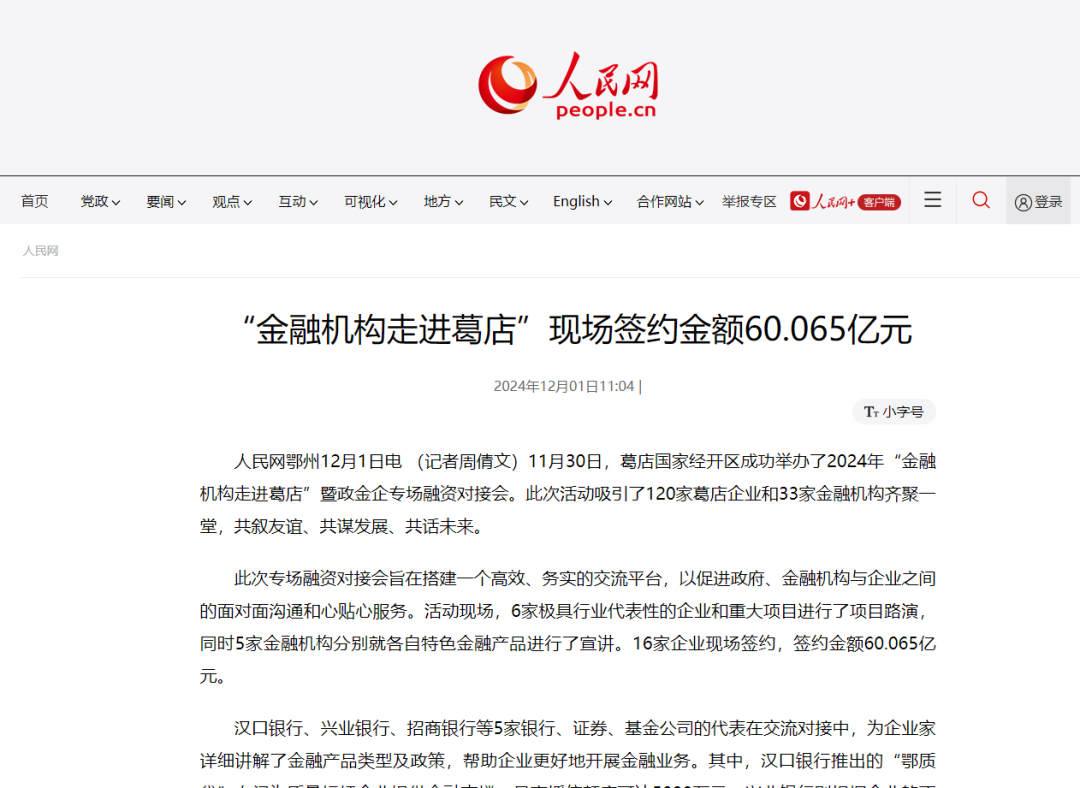 11月30日,葛店国家经开区成功举办了2024年“金融机构走进葛店”暨政金企专场融资对接会。此次活动吸引了120家葛店企业和33家金融机构齐聚一堂,共叙友谊、共谋发展、共话未来。
