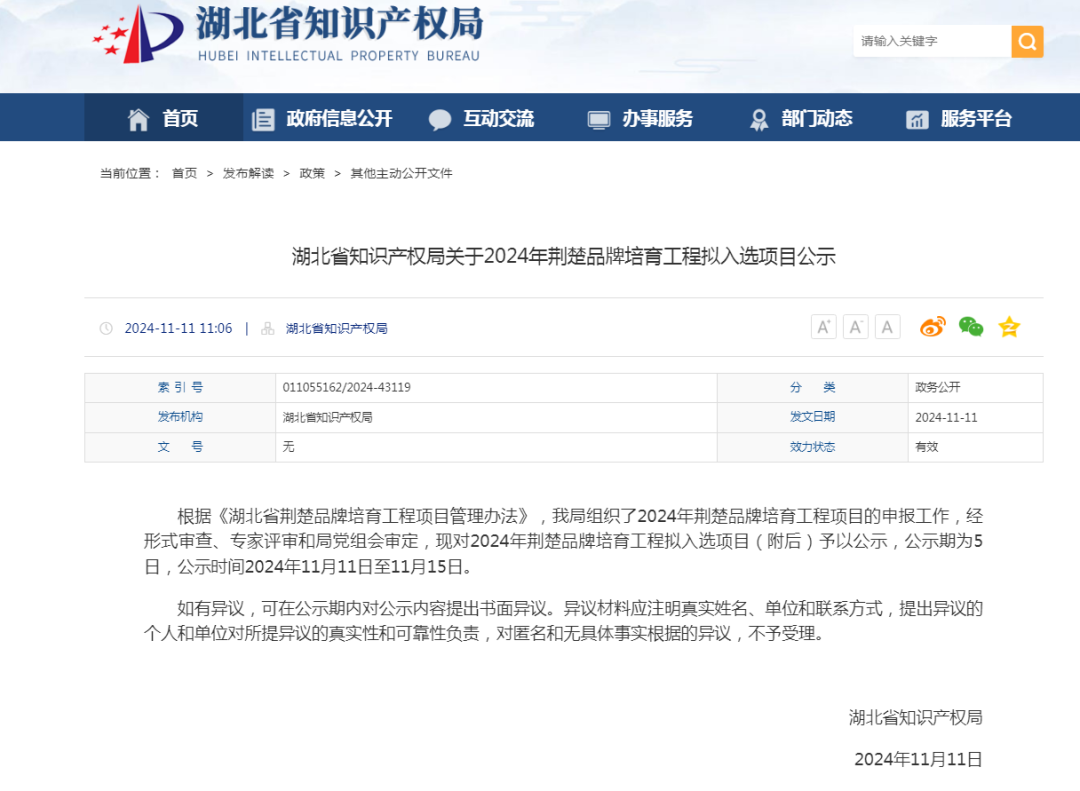 葛店经开区一项目成功入选2024年荆楚品牌培育工程项目!