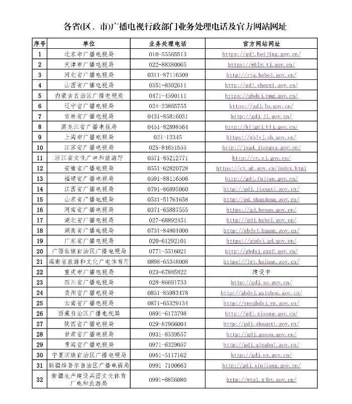 1.所在省(区、市)广播电视行政部门业务处理电话,以及官方网站等线上渠道;