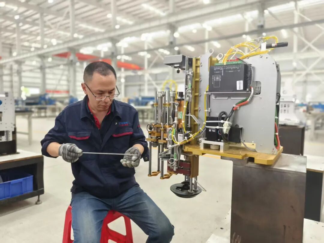 在天铭智能制造产业园1号厂房,工人们正在抓紧调试一台装配完成的TIMING五代机订单,调试完成后,这套装备将跨越重洋,送到欧洲客户手中。