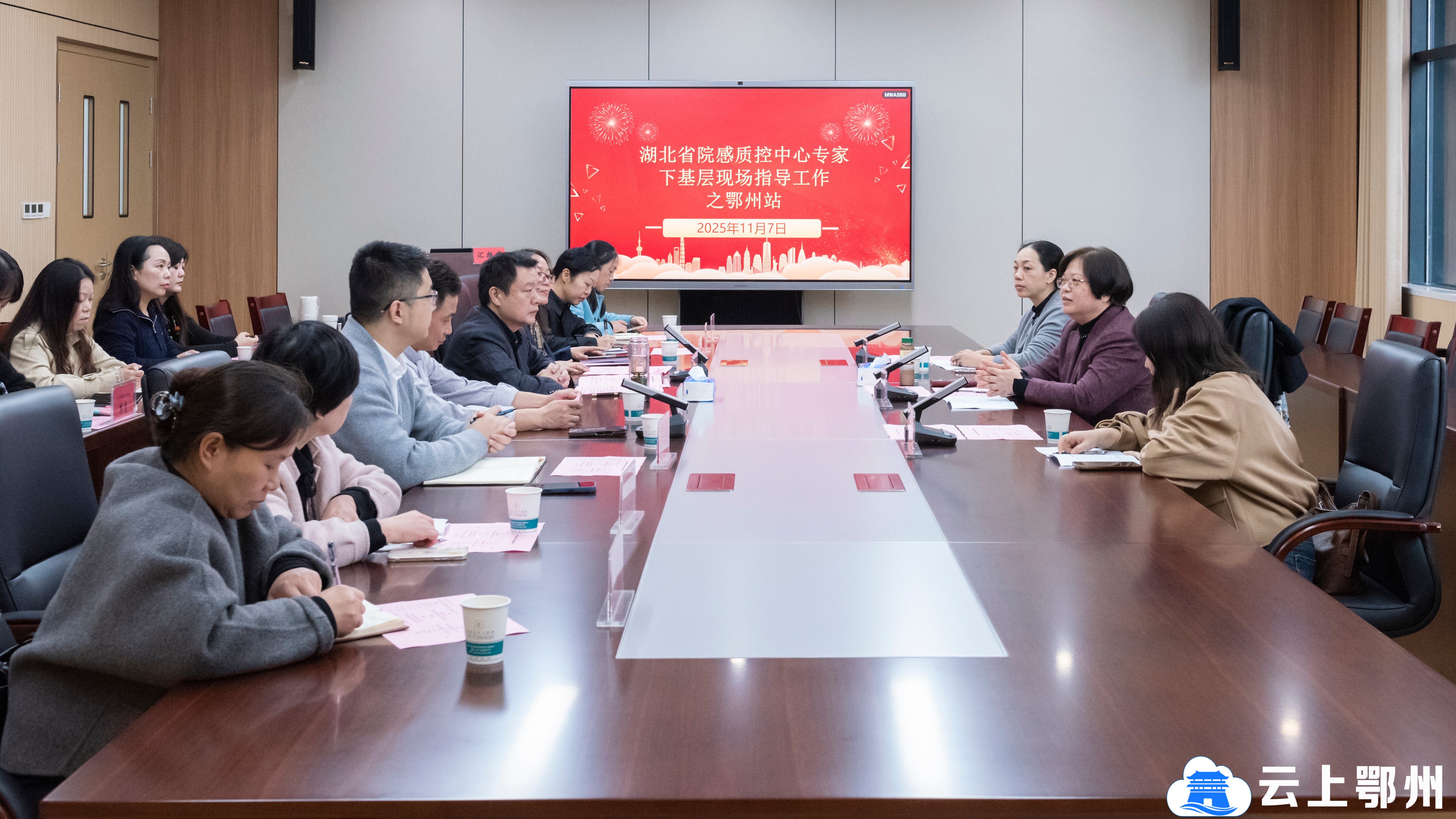 为持续筑牢基层医疗质量安全防线,进一步推动医院感染管理(以下简称“院感”)工作标准化、规范化建设,11 月 7 日,以湖北省医院感染管理质量控制中心主任熊莉娟为首的省专家组一行7人,对鄂州市院感质控中心进行检查指导。市卫健委、市中心医院相关负责人,市院感质控中心全体成员参加汇报会。