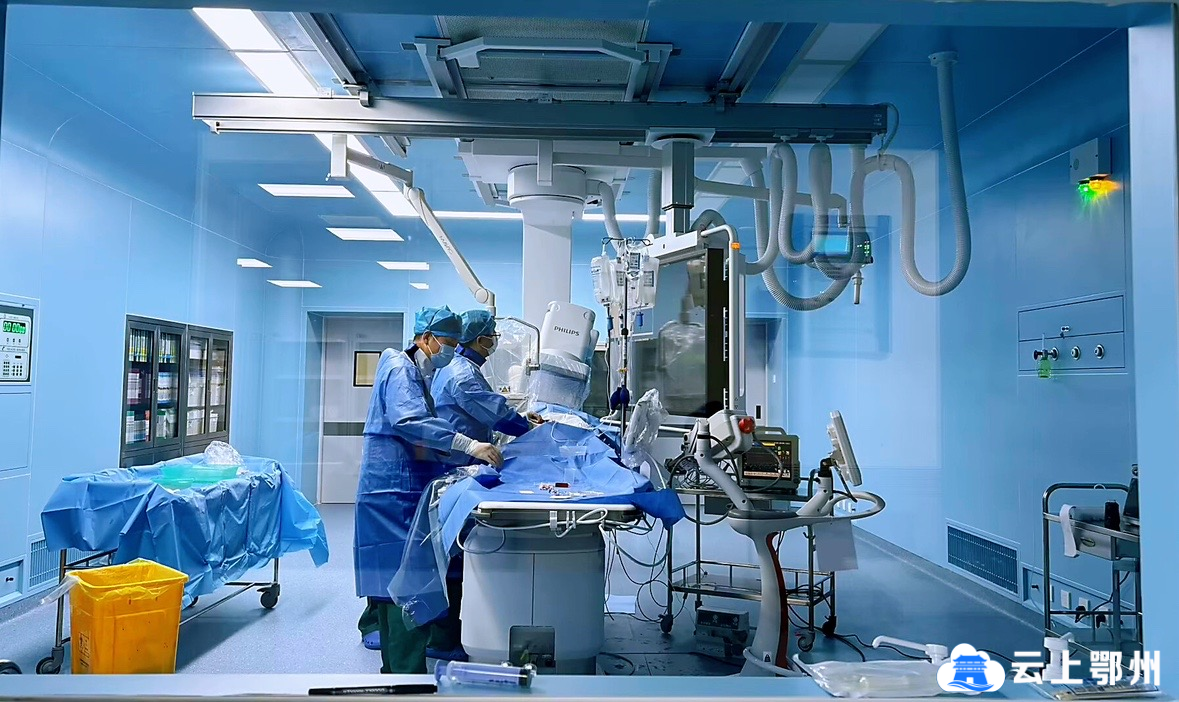 面对两例同时需要紧急介入取栓术的高危患者,鄂州市中心医院“一院两区”成熟的管理模式和高效的应急协调机制在此刻发挥了重要作用。医院神经内科主任徐峻峰,迅速做出决策:依托医院整合的优质医疗资源,两个院区的卒中救治团队即刻进入“双线作战”模式,并行启动介入室,调配最强技术力量。临空院区由副主任医师皮强峰迅速完成患者的术前评估,直达介入室。明堂院区由副主任医师朱金洲负责,同步为患者做好了手术准备。两院区介入室各项工作有条不紊、紧张高效地同步进行。