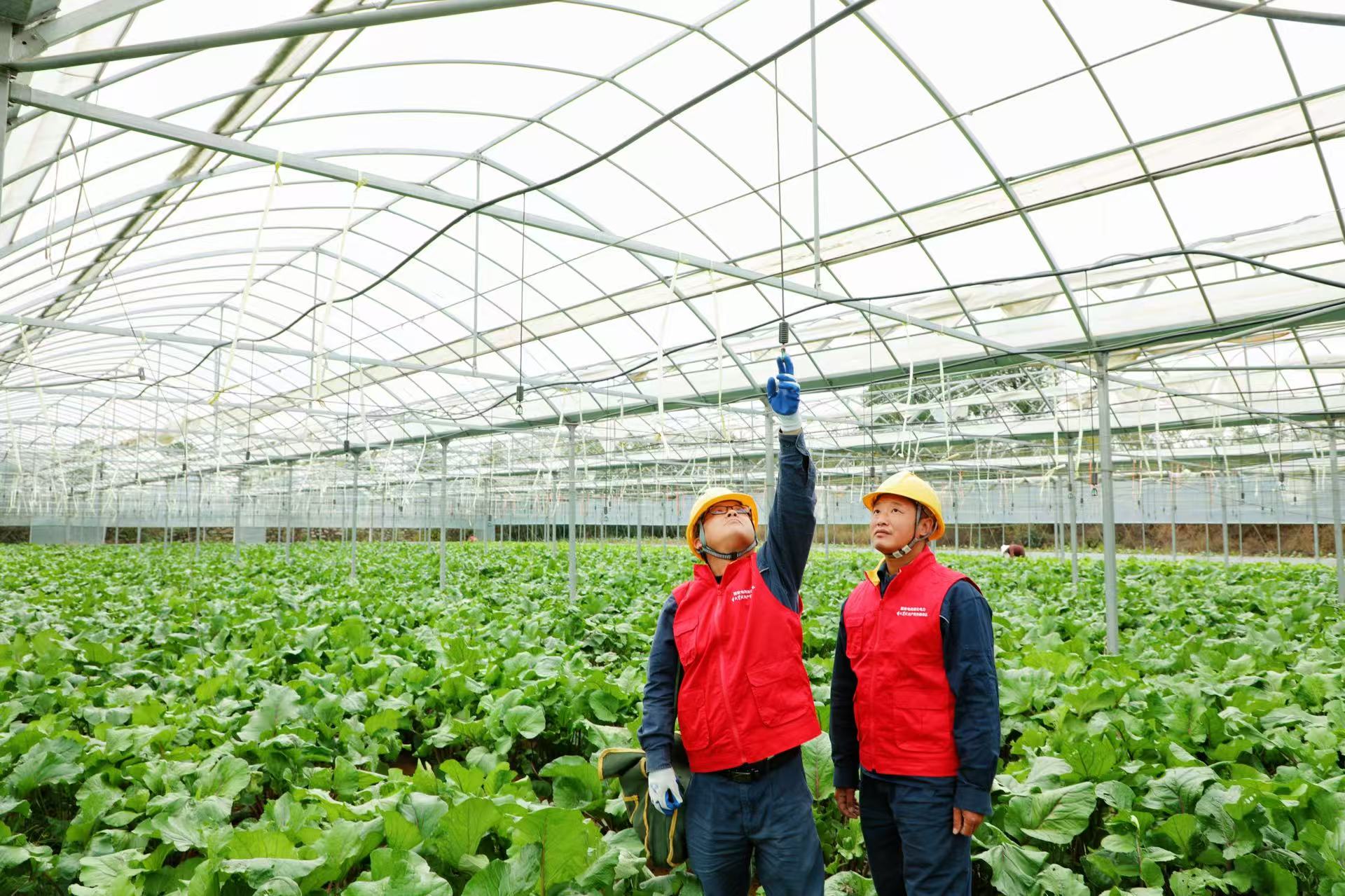 临行前,王中钢将便民服务卡交到范大姐手中:“大棚温控、灌溉系统有用电问题,随时联系,我们20分钟内赶到。”微风轻拂,菜香阵阵,遮阳网在电机带动下缓缓展开,守护着满棚生机。电线间漏下的光影,正好映在鲜嫩的菜薹尖上。