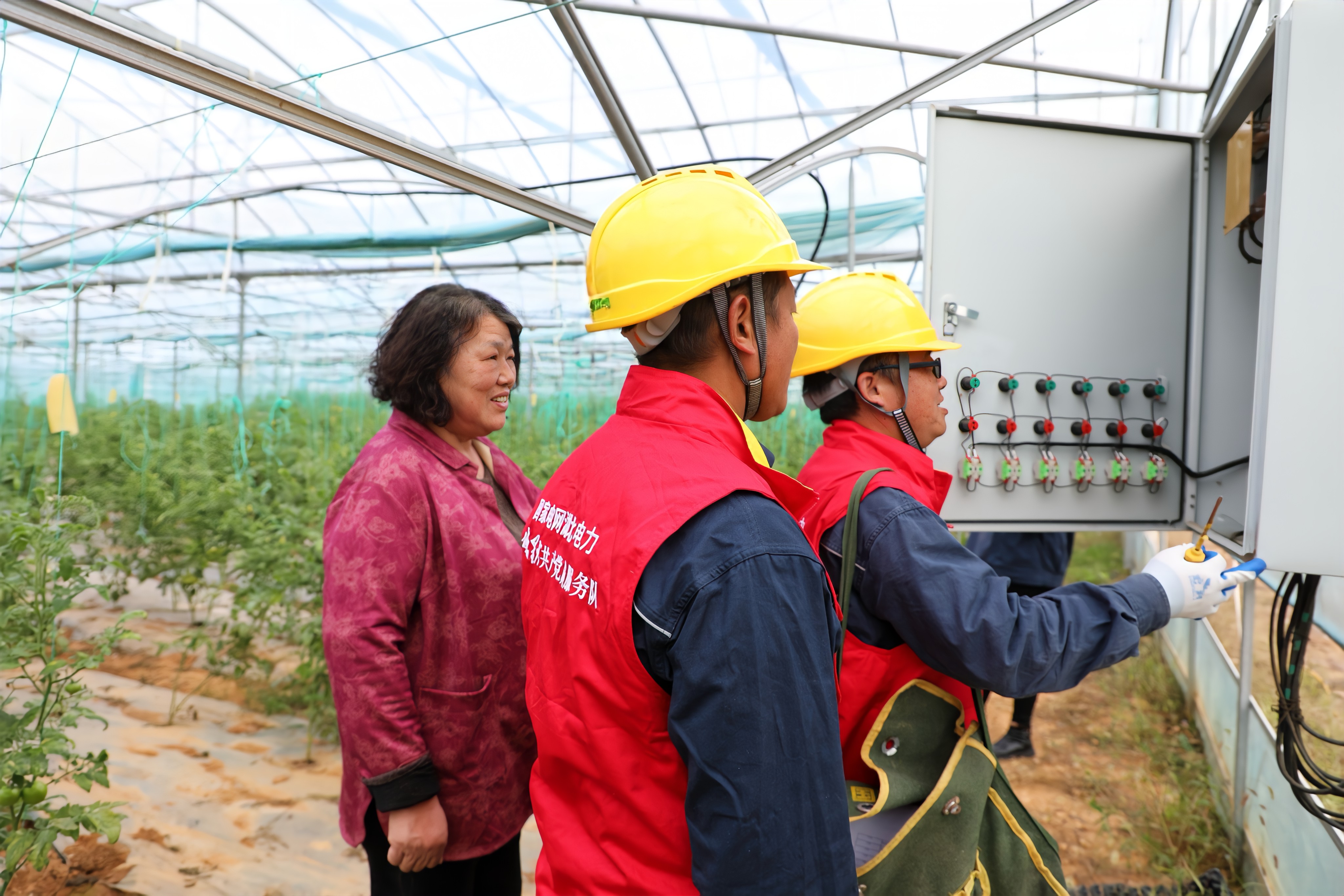 走进团结合作社棚区,服务队员王中钢、程江林首先检查了墙角的配电箱。打开箱门,他们仔细查看后指出:“大姐,这颗螺丝松了。恒温系统用电负荷大,必须紧固到位。”随着扳手转动,松动的端子很快固定妥当。随后,他们又对棚顶全自动遮阳网的电机、滴灌系统控制箱、棚区外的专变变压器进行拉网式检查,确保设备运行正常。