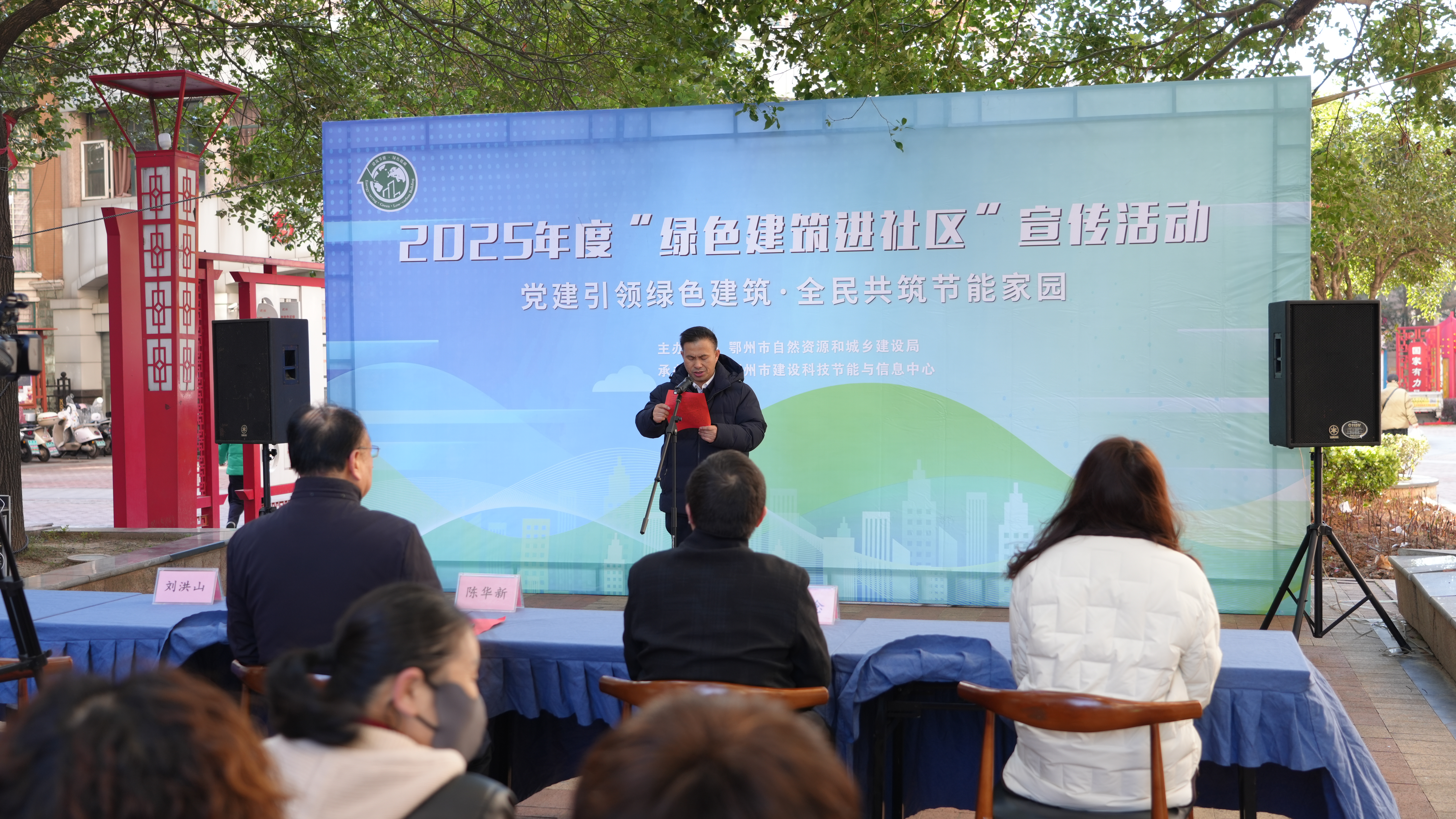 为深入贯彻“双碳”目标战略部署,切实推动城乡建设领域节能减排与可持续发展,11月18日,由鄂州市自然资源和城乡建设局主办、鄂州市建设科技节能与信息中心承办的2025年度“绿色建筑进社区”宣传活动正式启动。活动以“党建引领绿色建筑·全民共筑节能家园”为主题,将党建工作与建筑节能知识普及深度融合,为社区居民搭建起专业实用的绿色生活知识传递平台。