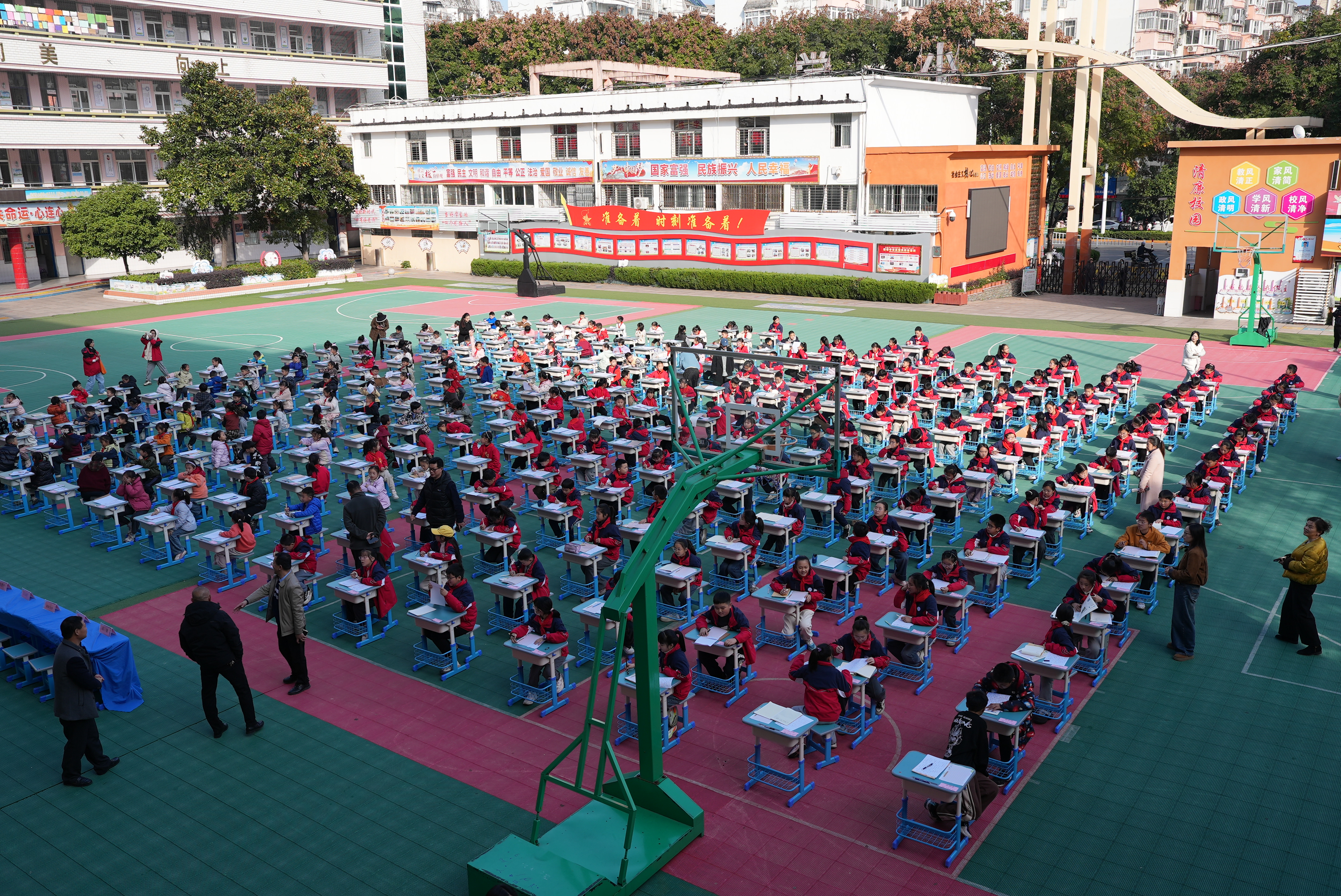 11月20 日下午,鄂城区凤凰街道洋澜小学内墨香萦绕、雅韵流转,由该校与鄂城区睿星培训中心联合主办的2025“睿星杯”千人校园书法大赛正式启幕。近千名学子齐聚一堂,以笔为媒体悟汉字之美,在笔墨挥洒间传承中华优秀传统文化,既为学校创建市级书法示范校筑牢基础,更让浓郁的书香浸润校园每个角落。