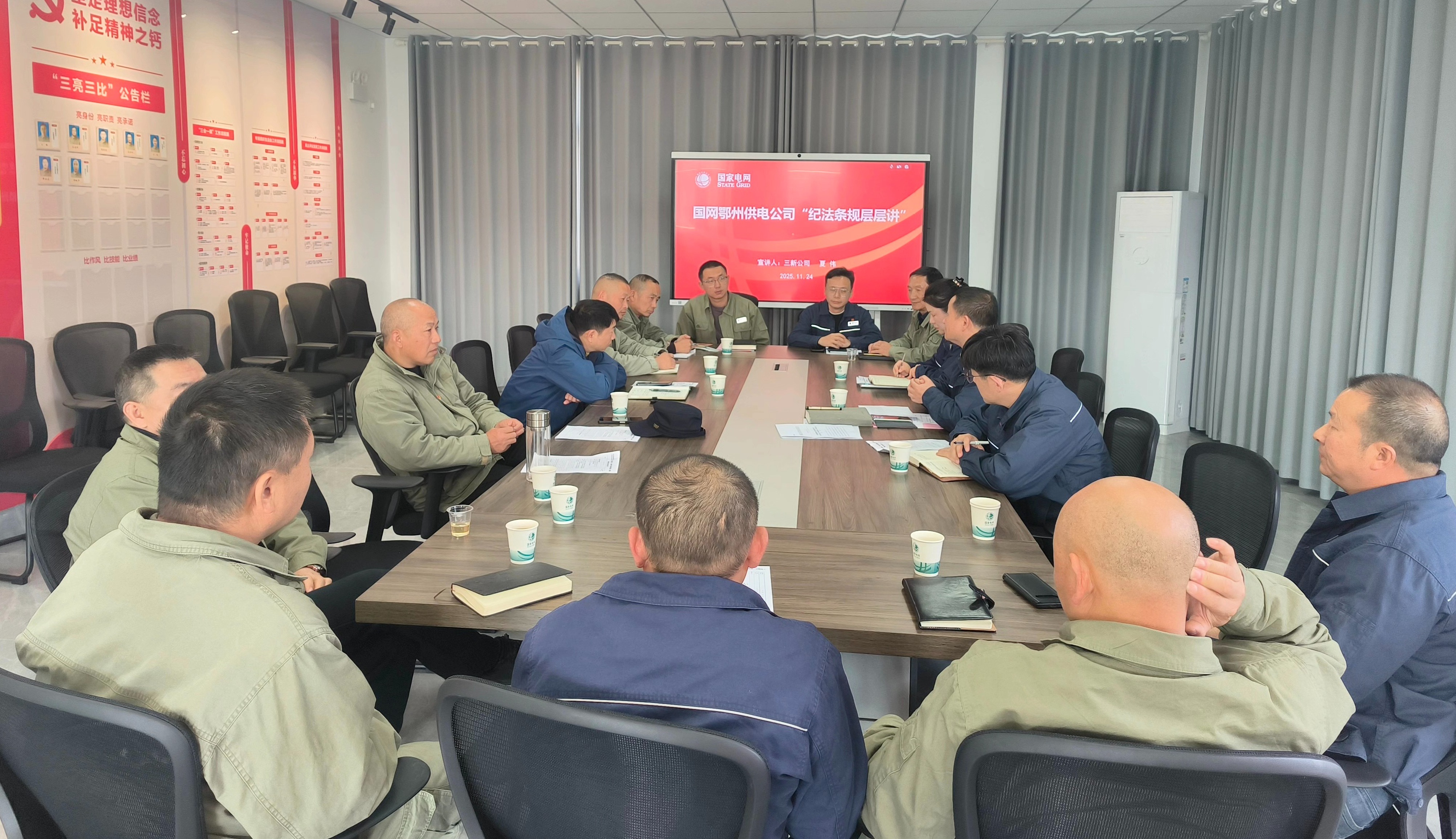 为深入学习贯彻党的二十届四中全会精神,落实全面从严治党要求,全力冲刺年度目标,近日,鄂州市三新供电服务有限公司以“纪法条规层层讲”活动为抓手,推动纪律教育向一线延伸,持续强化供服职工纪律意识,筑牢廉洁从业思想防线。