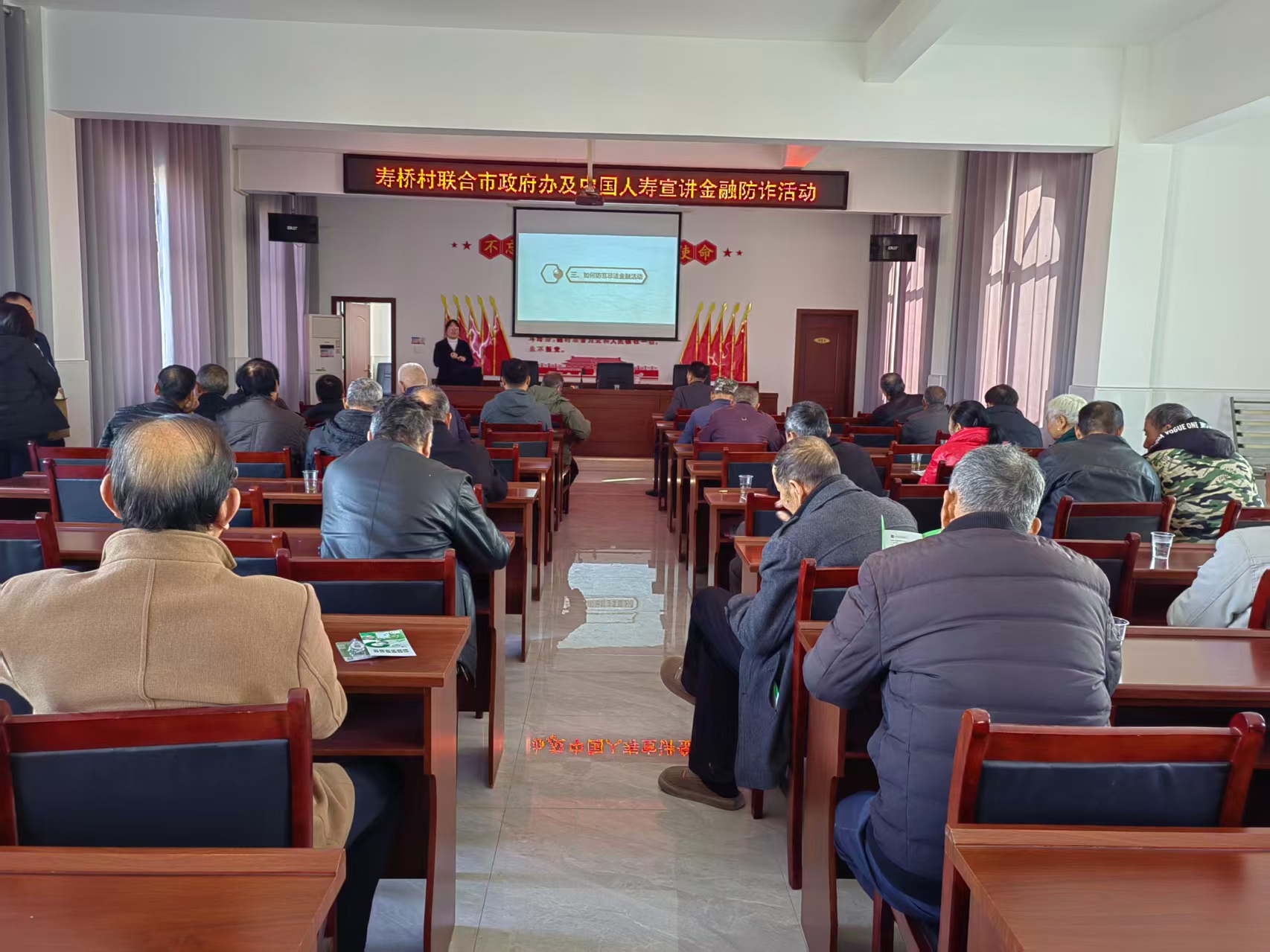 为提升村民金融风险防范意识,增强识别和抵制非法金融活动的能力,11月28日上午,中国人寿鄂州分公司联合市政府办公室,在泽林镇寿桥村党员服务中心举办了一场以“防范非法金融 守护财产安全”为主题的宣传活动。