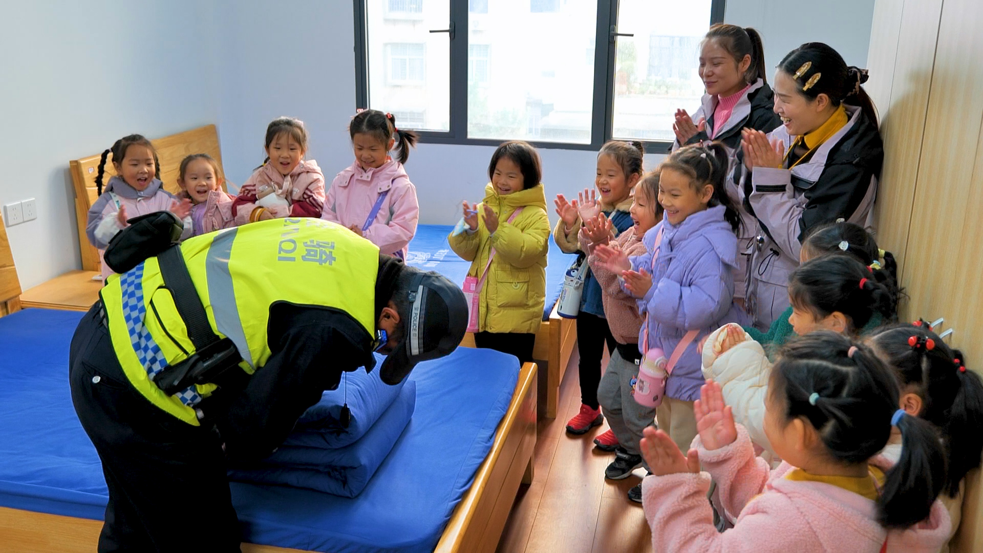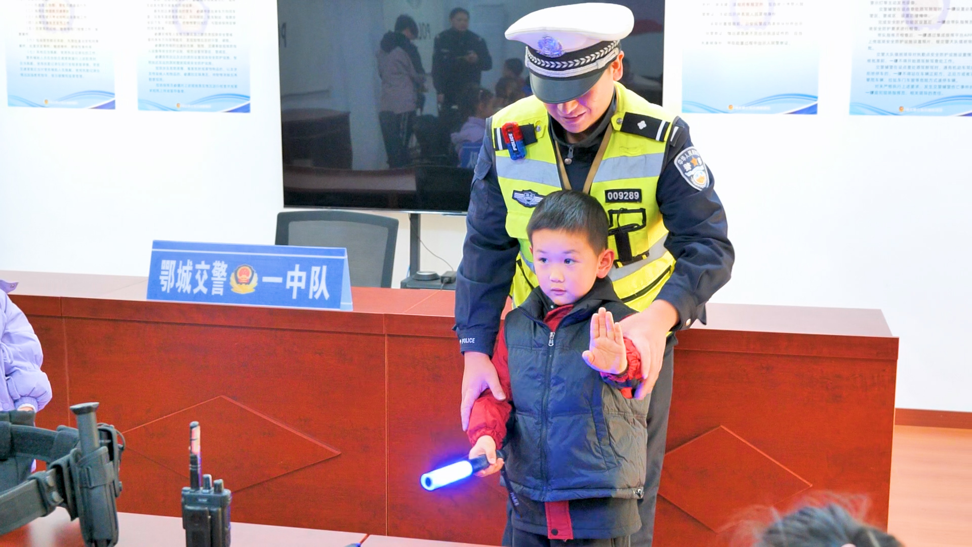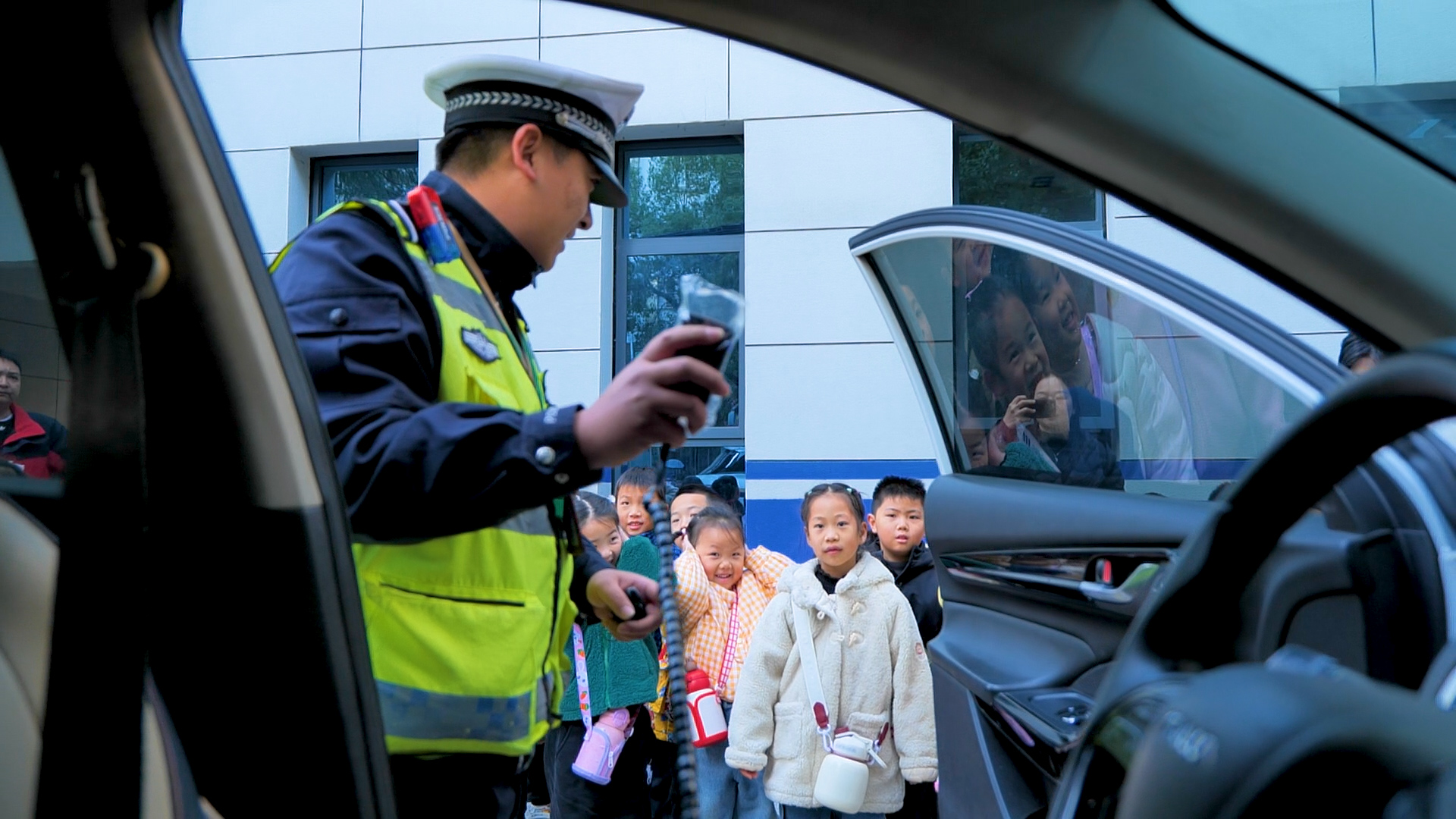 12月3日上午,参观鄂州市公安局交通管理局鄂城大队一中队的旅程正式开启,孩子们的眼睛里瞬间闪烁着好奇的光芒!刚抵达大队,孩子们的目光就被警车吸引,围着警车好奇地观察外观、触摸车身,交警叔叔耐心讲解警车的功能与装备,让孩子们对这个“交通安全守护者”有了初步认知。走进视频指挥中心,左警官的讲解让孩子们大开眼界,他们不仅了解到视频监控中心是城市交通的“智慧大脑”,能实时监控路况、处理突发情况,还亲手操作电脑移动摄像头,清晰看到路口的交通状况。当屏幕上播放交通事故案例时,孩子们都屏住了呼吸,左警官借此着重强调乘车安全要点,让孩子们深刻意识到违反交通规则的严重后果。随后的寝室参观更是让孩子们大开眼界,交警叔叔麻利地将被子叠成方方正正的“豆腐块”,孩子们忍不住拍手叫好,还学着警官的样子比画起来。在警用设备讲解环节,手铐、警棍、强光灯、指挥棒、对讲机等装备一一亮相,交警叔叔拆解每个设备的用途,比如伸缩警棍如何防身、对讲机怎样实现实时沟通,孩子们还亲手拿起装备体验,小心翼翼的动作里满是对交警工作的敬畏。活动最后,孩子们与交警叔叔、阿姨合影留念,一张张笑脸定格了这次难忘的参观之旅。实地的参观体验,让孩子们走出课堂,近距离触摸交警工作的日常,交通安全的种子也在心中悄然扎根。