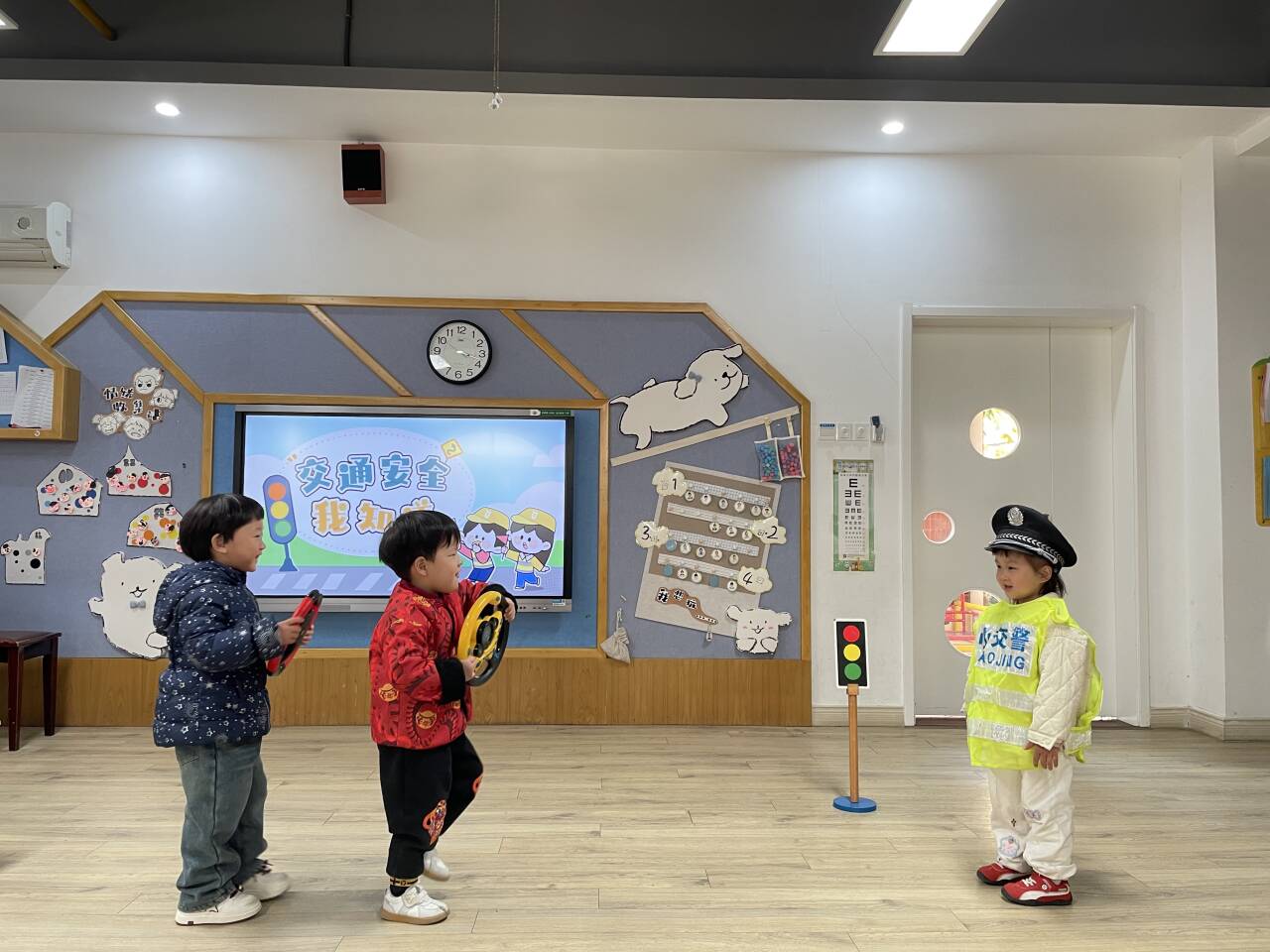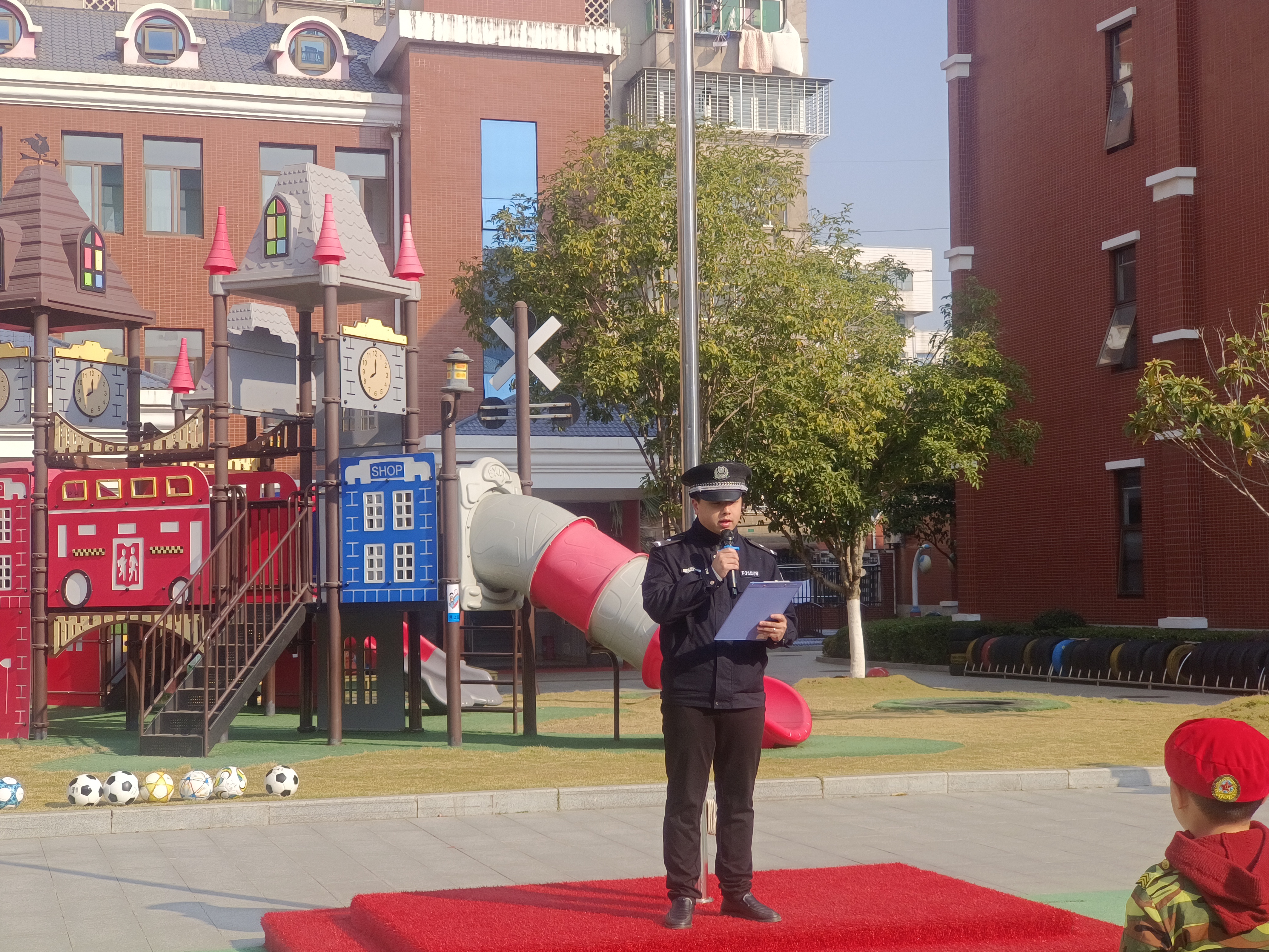 活动伊始,各年级组根据幼儿的年龄特点,借助故事、儿歌、职业体验等生动有趣的形式,开展了交通安全教育活动。孩子们在轻松愉悦的氛围中,学习交通安全知识。同时,幼儿园还通过钉钉群发布了《致家长的一封交通安全信》,全方位地开展交通安全知识宣传,让宣教活动既营造出良好氛围,又具备高效性和实效性。12月1日,在升旗仪式上,幼儿园邀请了凤凰派出所的汤警官,以《宪法在我心中》为主题,向小朋友们进行宣讲,为全园师生普及宪法知识,将法治观念融入幼儿的成长认知之中。